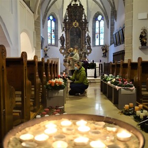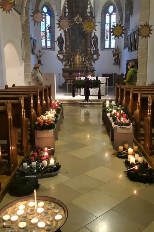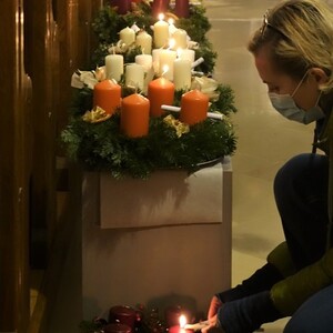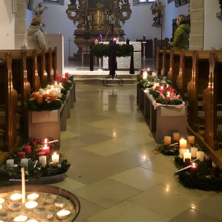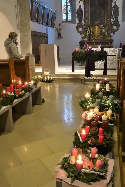 Dadurch, dass heuer alle offiziellen Adventfeiern wegen des Lockdowns abgesagt werden mussten, wurde die Segnung der Adventkränze in einer kleinen Zeremonie durch unsere Wortgottesfeierleiterin Martina Emhofer vorgenommen. Assistiert wurde von Elfi Dahedl.