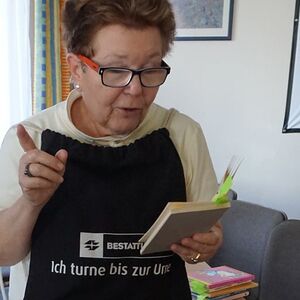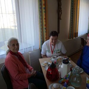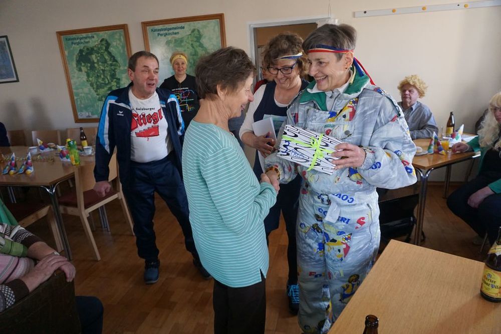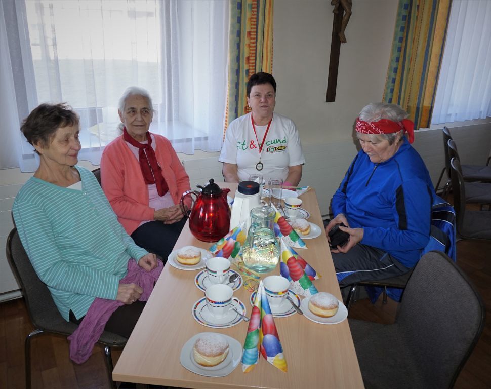 Das mussten sie auch sein, denn das Programm war sehr herausfordernd: Wurfspiel, Schätzspiel, Singen und Tanzen zur wunderbaren Musik von Marianne und Hans Kaindl/Haseneder, Lose ziehen für die Tombola. In den kurzen Pausen zwischen den einzelnen Programmpunkten sorgte Ilse Kögler mit ihren lustigen Geschichten für herzliches Lachen. Um auch bis zum Schluss fit zu bleiben, stärkten sich alle mit Krapfen, bunt belegten Broten und Getränken. Erst am späten Nachmittag machten sich unsere Gäste gut gelaunt und schwer bepackt mit tollen Tombolapreisen auf den Heimweg.