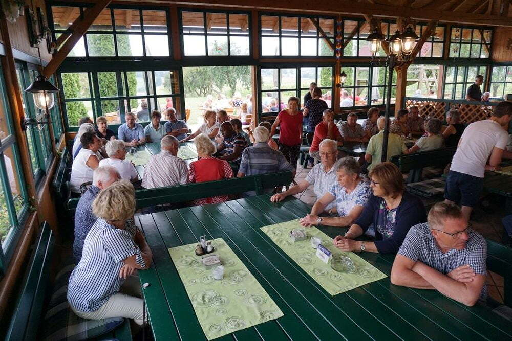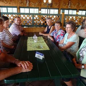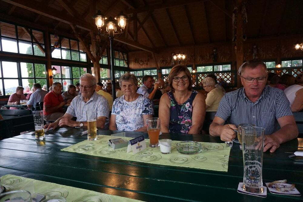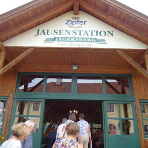 Jager´s Mostschank in Pichl bei Wels war die letzte Station auf unserem Weg ins Hausruckviertel. Die große Anzahl der anwesenden Gäste ließ uns vermuten, dass dies ein besonders beliebtes und gutes Lokal sei. Und das stimmte, besonders die Spezialität des Hauses, die Ripperl, begeisterten uns. Zum Schluss ließen sich noch einige von uns die riesigen Bauernkrapfen und Buchteln einpacken und schon eilten wir zum Bus, um Richtung Heimat zu fahren.