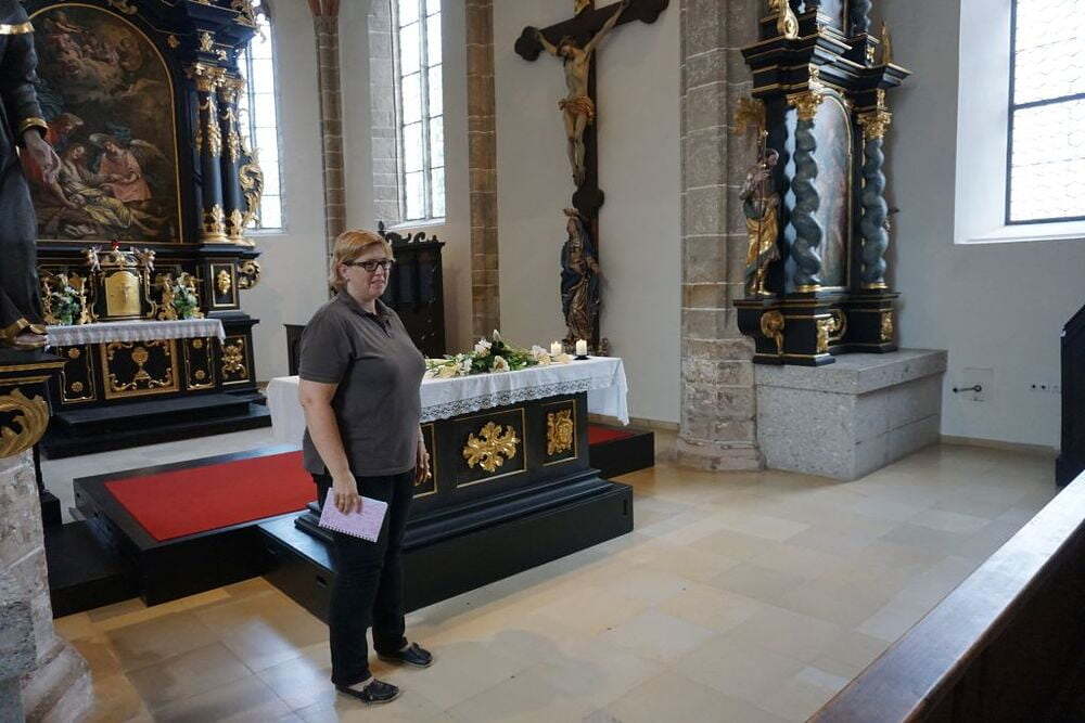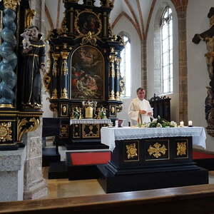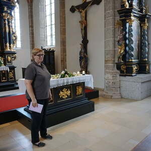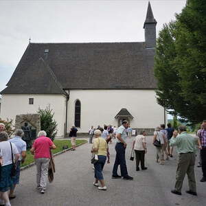 Der Weg zu der wunderschönen Kirche am Magdalenaberg in Bad Schallerbach stellte eine große Herausforderung für unseren Busfahrer dar: Die Steigung von 18% auf der schmalen und kurvenreichen Straße war keine optimale Strecke für einen 58-er Bus. In der Kirche aus dem 15. Jahrhundert, die 2013 liebevoll renoviert wurde, feierten wir nach einer kurzen Kirchenführung Gottesdienst. Da wir uns in der Kirche am Magdalenaberg befanden, predigte unser Pfarrprovisor über die Apostelin Maria Magdalena.