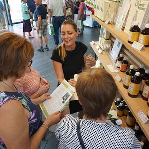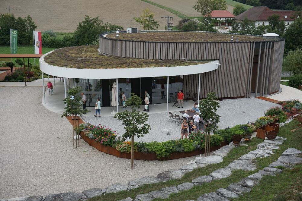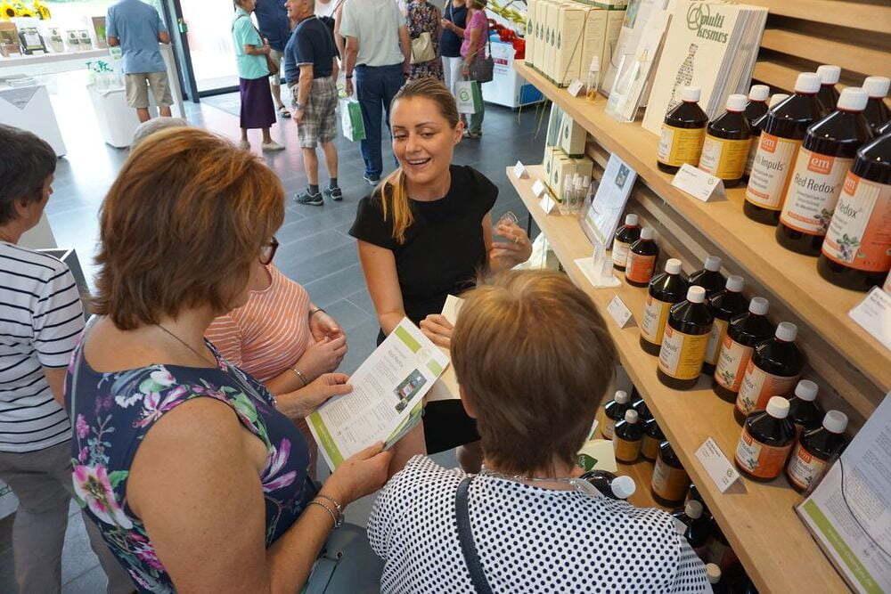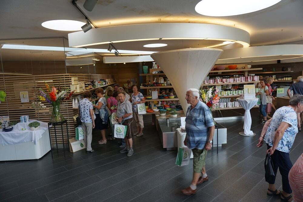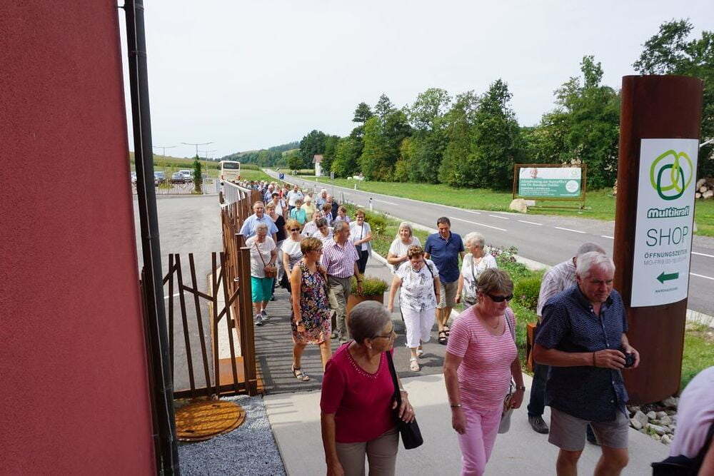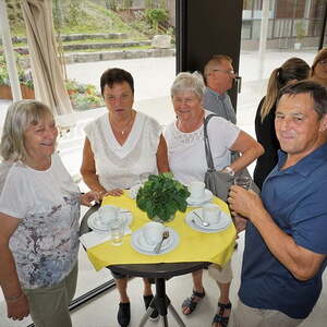 Das erste Ziel unserer Reise war der 350 Jahre alte Stumplhof in Pichl bei Wels, der Sitz des Familienunternehmens Multikraft. Gleich nach der Begrüßung wurden wir im Gartenpavillon mit köstlichen biologischen Mehlspeisen, Kaffee und Apfelsaft verwöhnt und wir wunderten uns über die weißen Keramikringe, die in den bereitgestellten Wasserkrügen lagen. Bei dem anschließenden Vortrag erfuhren wir, dass die EM Keramik die Wasserqualität verbessert, und nicht nur das - die Effektiven Mikroorganismen beeinflussen positiv alle möglichen Lebensbereiche. Danach konnten wir den schön gestalteten Garten besichtigen oder einige Produkte mit den Effektiven Mikroorganismen kaufen, um ihre Wirkung zu Hause gleich ausprobieren zu können.