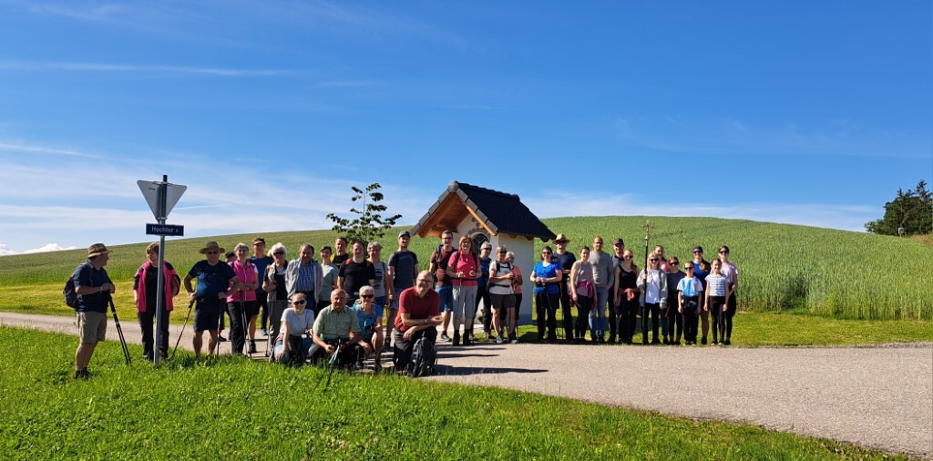 Bei herrlichem Wetter machten sich fast 40 Pergkirchner*innen auf den Weg nach Allerheiligen Unterwegs begleitete uns das Rosenkranzgebet. Bei der Grammer- und Goggenreiterkapelle gab es eine Gebetsrast mit Liedern und Texten zum Thema „Ich bin stark wie ein Baum!“