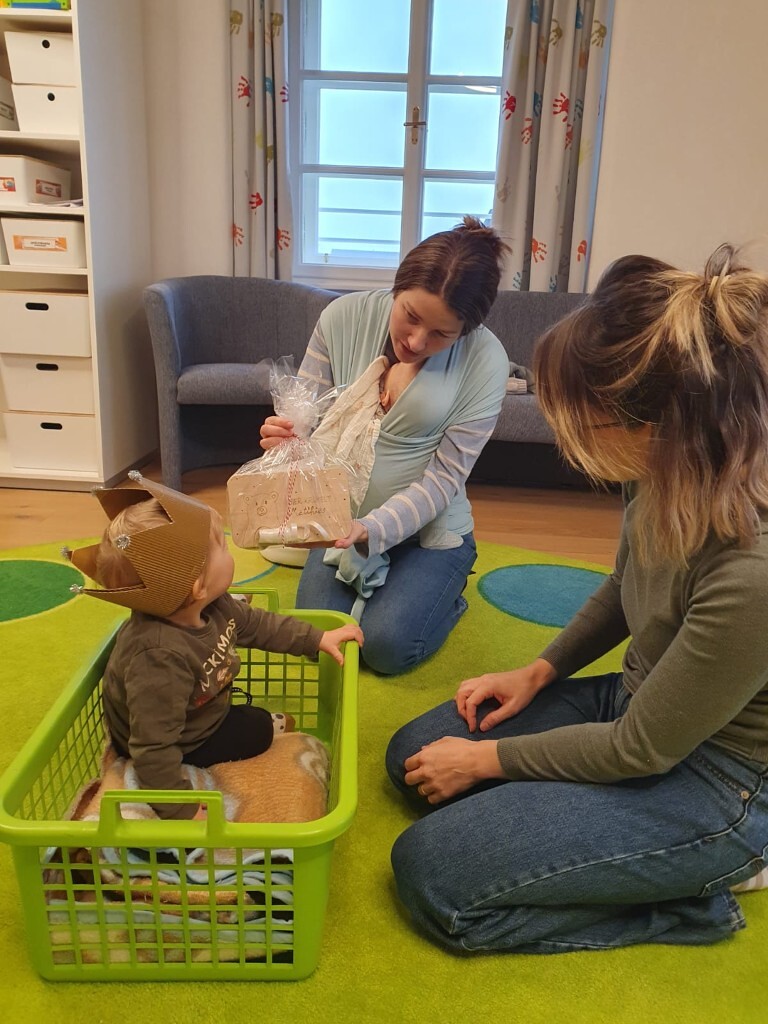 Darüber hinaus feiern wir Feste im Jahreskreis sowie die Geburtstage der Kleinen dürfen natürlich auch nicht zu kurz kommen und werden mit Kuchen und Kaffee gefeiert. Im Sommer treffen wir uns jährlich zu einem gemütlichen Abschlussfest am Sportplatz und verabschieden „die Großen“, die in den Kindergarten übergehen.