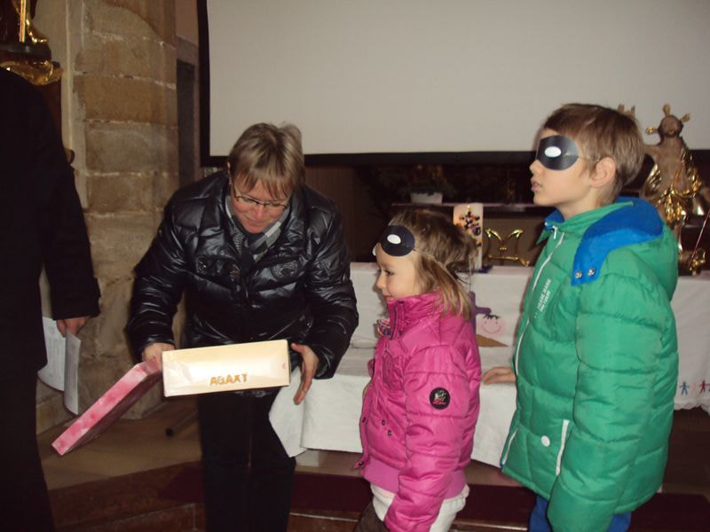 Zuerst waren die Kinder eingeladen zu erahnen, wie es ist, blind zu sein. Dazu durften sie mit verbundenen Augen Dinge ertasten, erriechen und schmecken. Auch Geräusche mussten erraten werden. Dann wurde mithilfe von Bildern die Geschichte des blinden Bartimäus gelesen und besprochen.