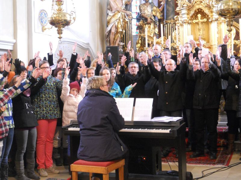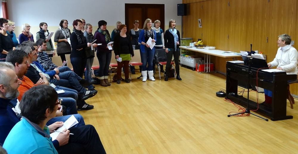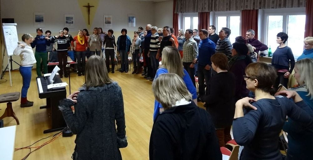 Dieser Gospelworkshop war mehr als nur einfaches Chorsingen im Plenum: Mit ihrer mitreißenden, humorvollen und professionellen Art führte uns die Referentin Angelika Rehaag, die extra aus Deutschland angereist war, musikalisch durch das Wochenende bis hin zur abschließenden Gospelmesse, wobei immer die Begeisterung für das gemeinsame Singen und die Lebendigkeit im Chor im Mittelpunkt standen.