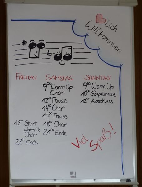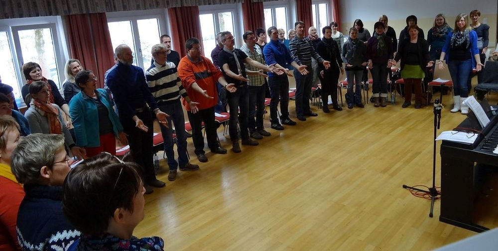 Vorkenntnisse (oder gar Notenlesen) waren nicht Voraussetzung, immerhin wurden die Gospels gänzlich ohne Noten einstudiert – diese gab es dann aber am Ende des Workshops, sodass die Musik auch noch nach diesem Wochenende in Peuerbach und Umgebung weitergesungen werden kann.
