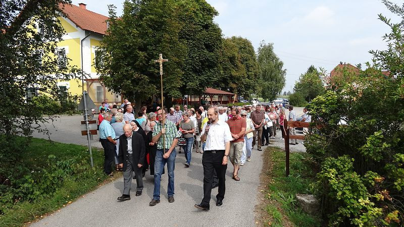 "Gemeinsam auf dem Weg" - unter diesem Thema stand die Familienwallfahrt unseres Dekanates, die heuer in unserer Pfarre veranstaltet wurde. Organisiert von kfb und KMB. Überraschend viele Teilnehmer, rund 180, gingen betend vom Wirt in Spaching nach Oberaching, zu der, im Vorjahr erbauten Kapelle von Hilde und Franz Hellmair. Dort wurde mit Pfarrer Padinger noch Abschlußgottesdienst gefeiert.