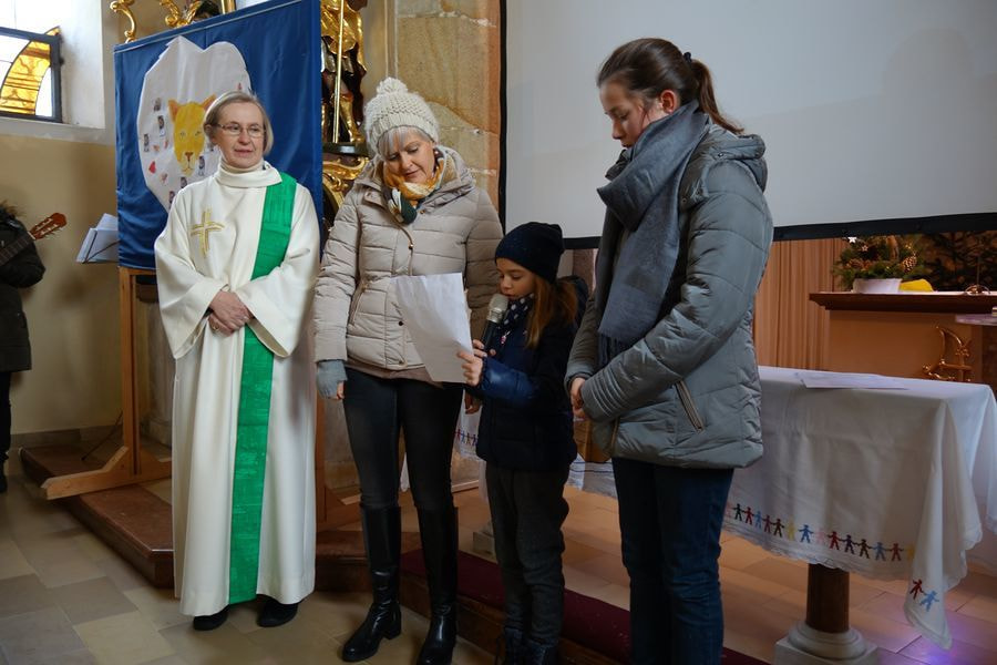Nachdem wir die Geschichte von Daniel in der Löwengrube erfahren haben, dachten wir darüber nach, welche Situationen uns in unserem Leben Mut abverlangen. In einem Gespräch mit den Kindern gingen wir noch einmal näher auf die Geschichte ein. Zum Hinausgehen gab es für jedes Kind eine Gebetsrolle.