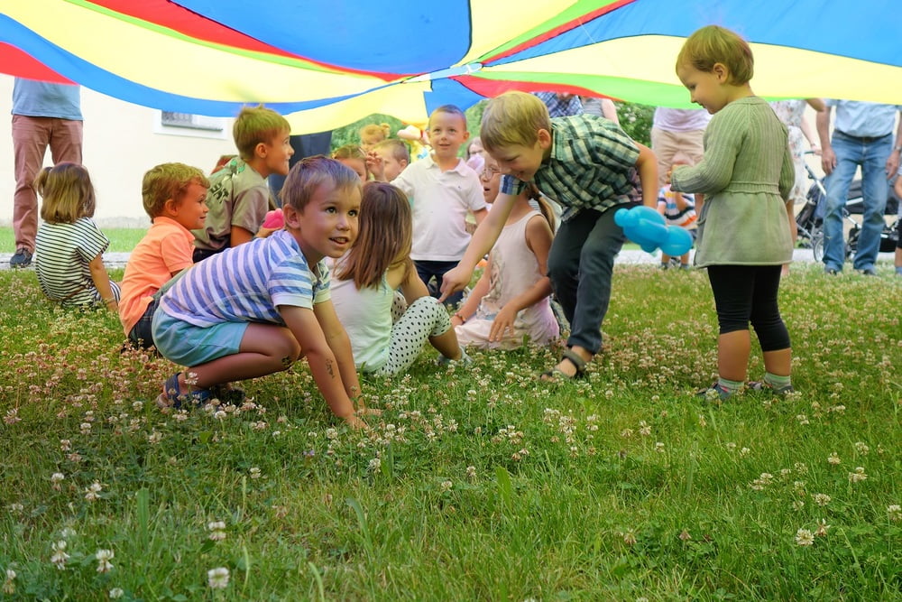 Eine bunte Kinderkirche mit viel Bewegung durften wir an diesem Sonntag im Freien feiern.