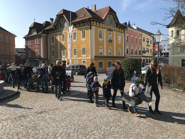 Wie schon seit einigen Jahren feierten wir auch an diesem Palmsonntag mit den Kindern nach der Palmweihe die Kinderkirche im Freien.