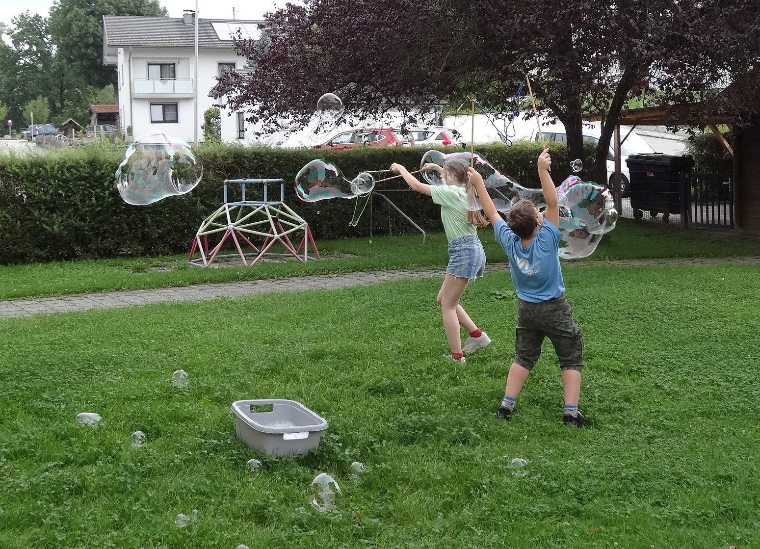 Wiederum eine große Attraktion waren die Riesenseifenblasen. Von dieser Station konnten sich die meisten nur schwer trennen. Zum Abschluss gab es noch ein "Daddy cool"-Tattoo.