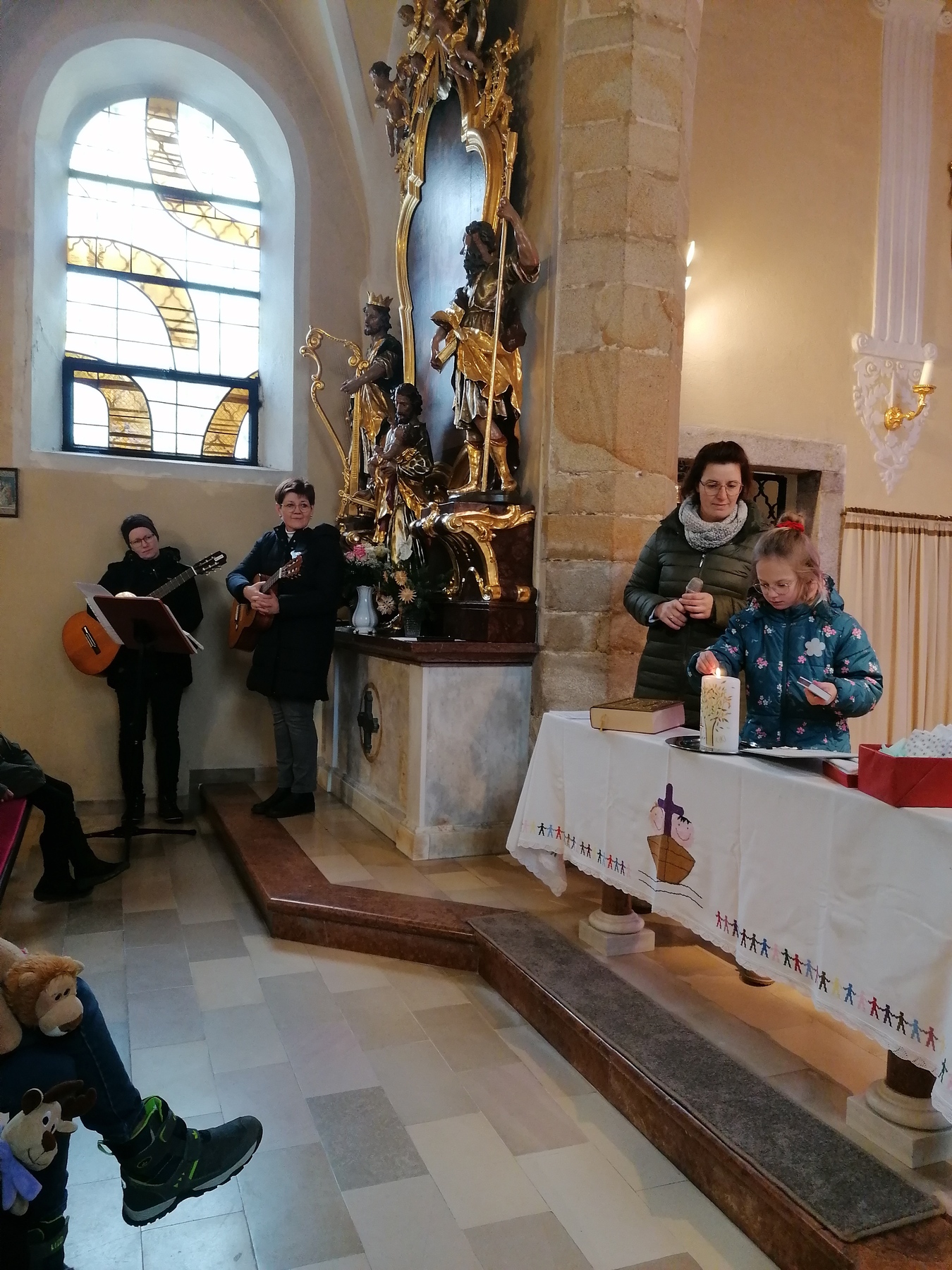 Uns so zog die ganze Kinderkirche gemeinsam mit Bartimäus mit dem Lied „Viele, viele Gäste,...“ in die große Pfarrkirche ein und Jesus wird immer das Licht der Welt sein.
