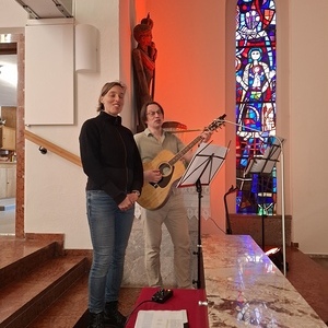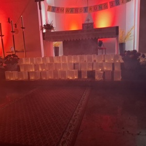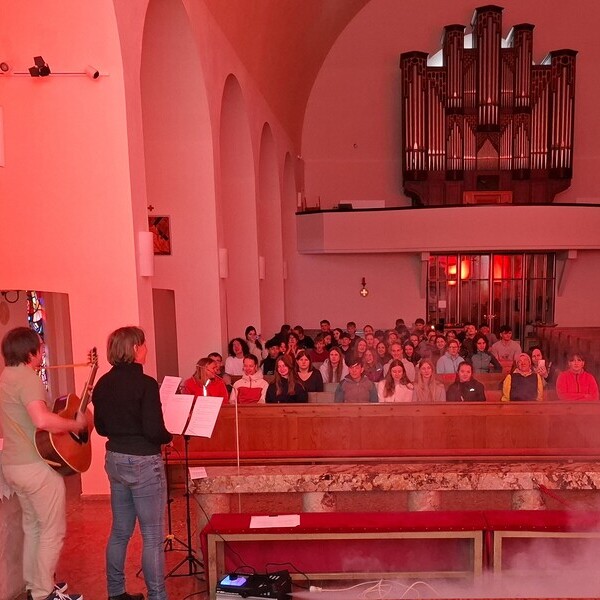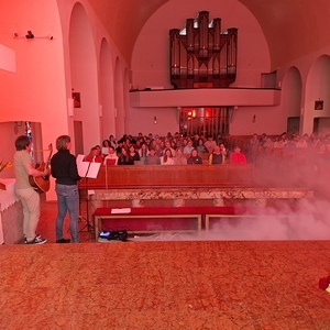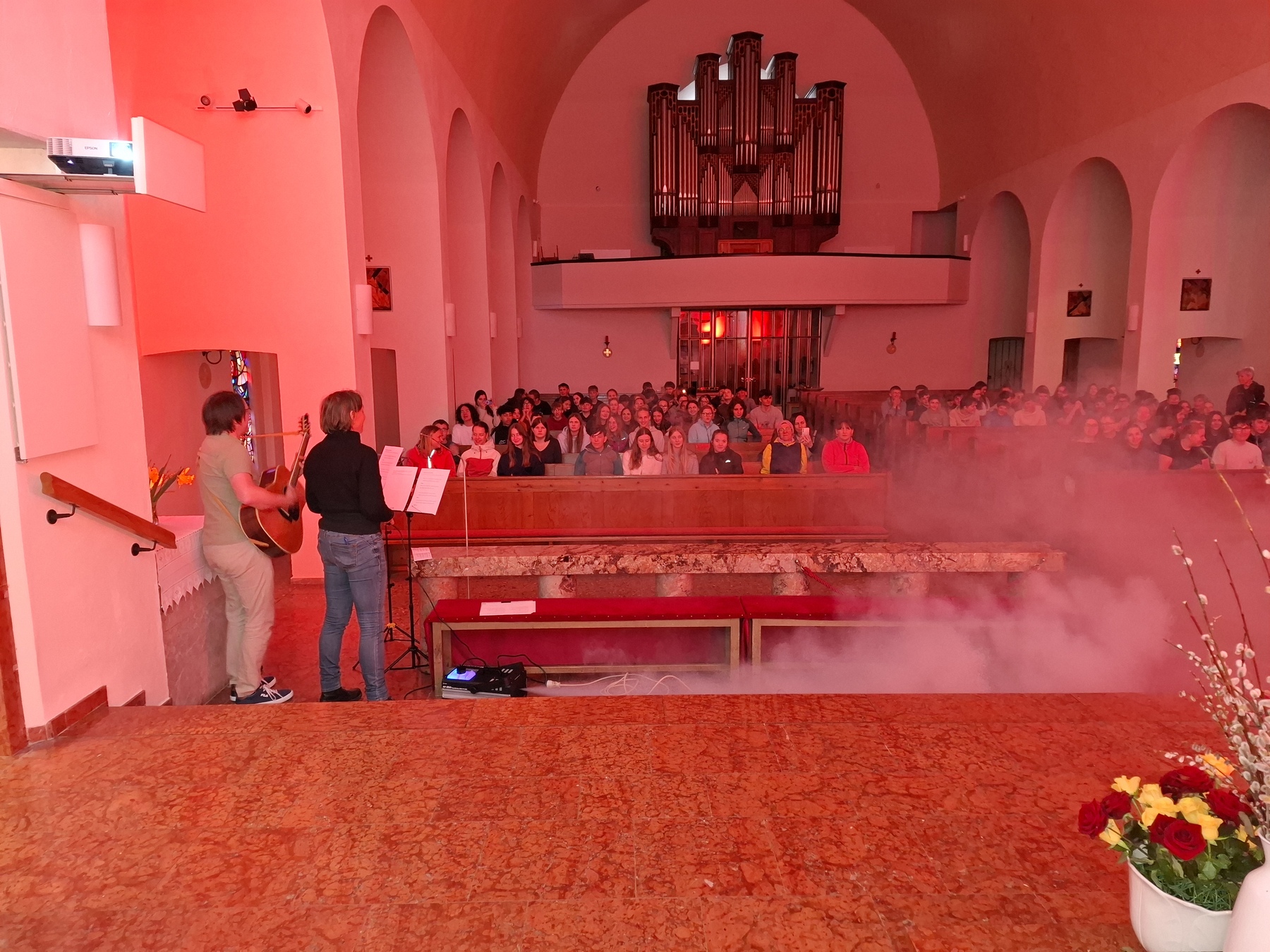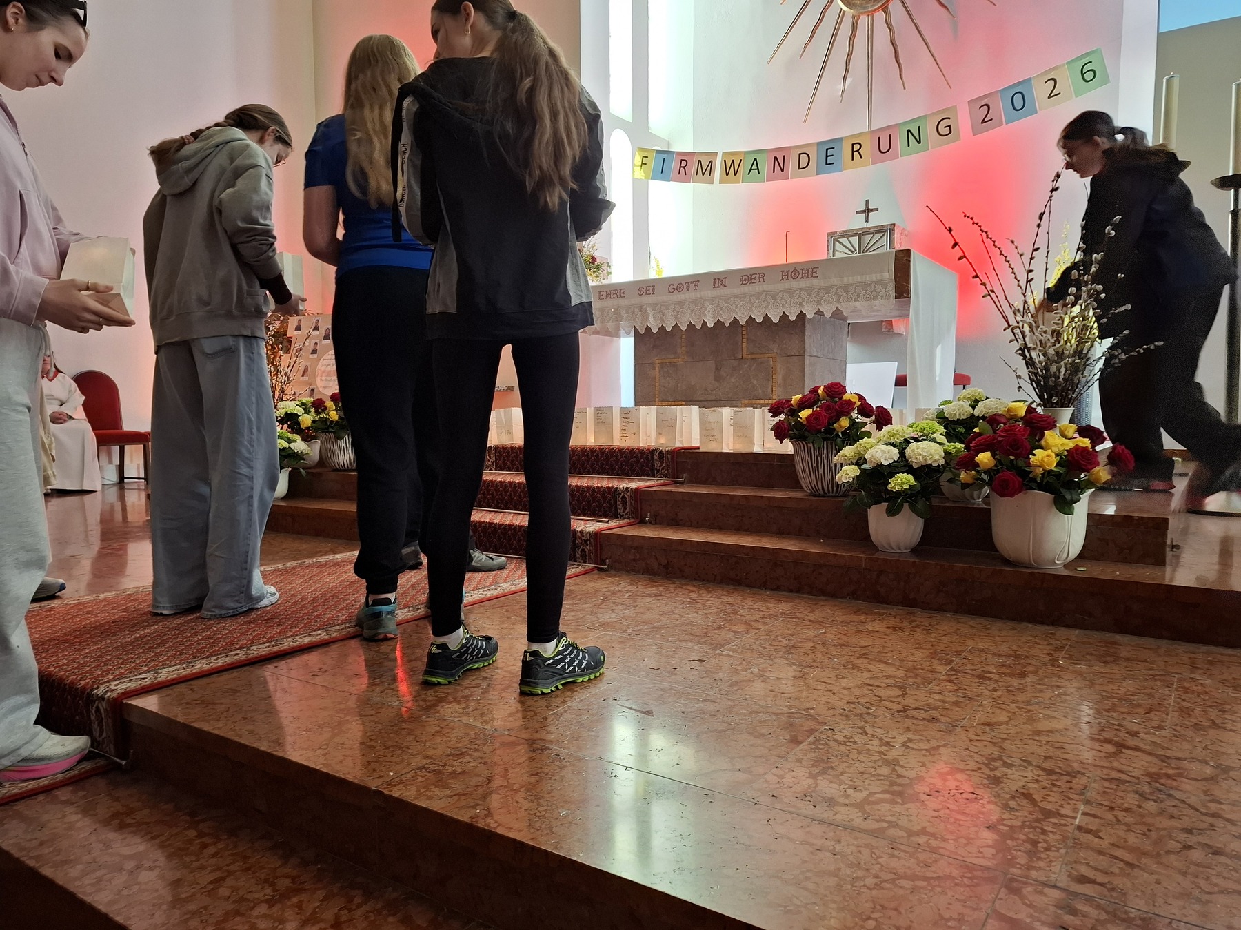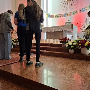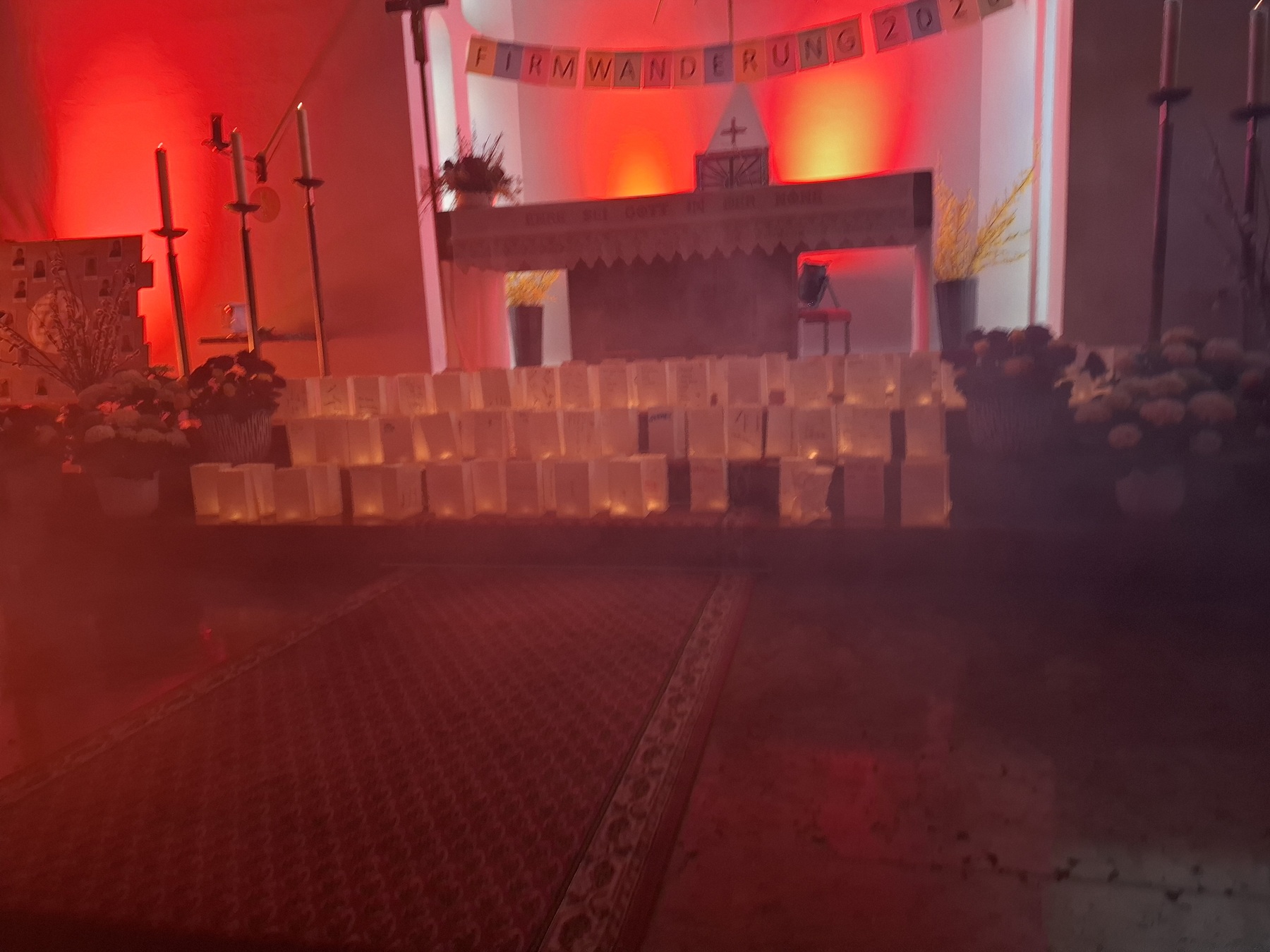 Mit Impulsen und kurzem Innehalten in der Kirche und beim Kalvarienberg führte die Wanderung über den Elisabeth-Waldweg bis nach Pfandl. Nach einer kurzen Rast am Marienplatz folgte eine gemeinsame Messe in der Pfandler Kirche. Die Gestaltung unter Einbindung der Firmkandidaten, besondere Musik, farbiges Licht und die vorabendliche Uhrzeit machten dies zu einem besonders stimmungsvollen Erlebnis.