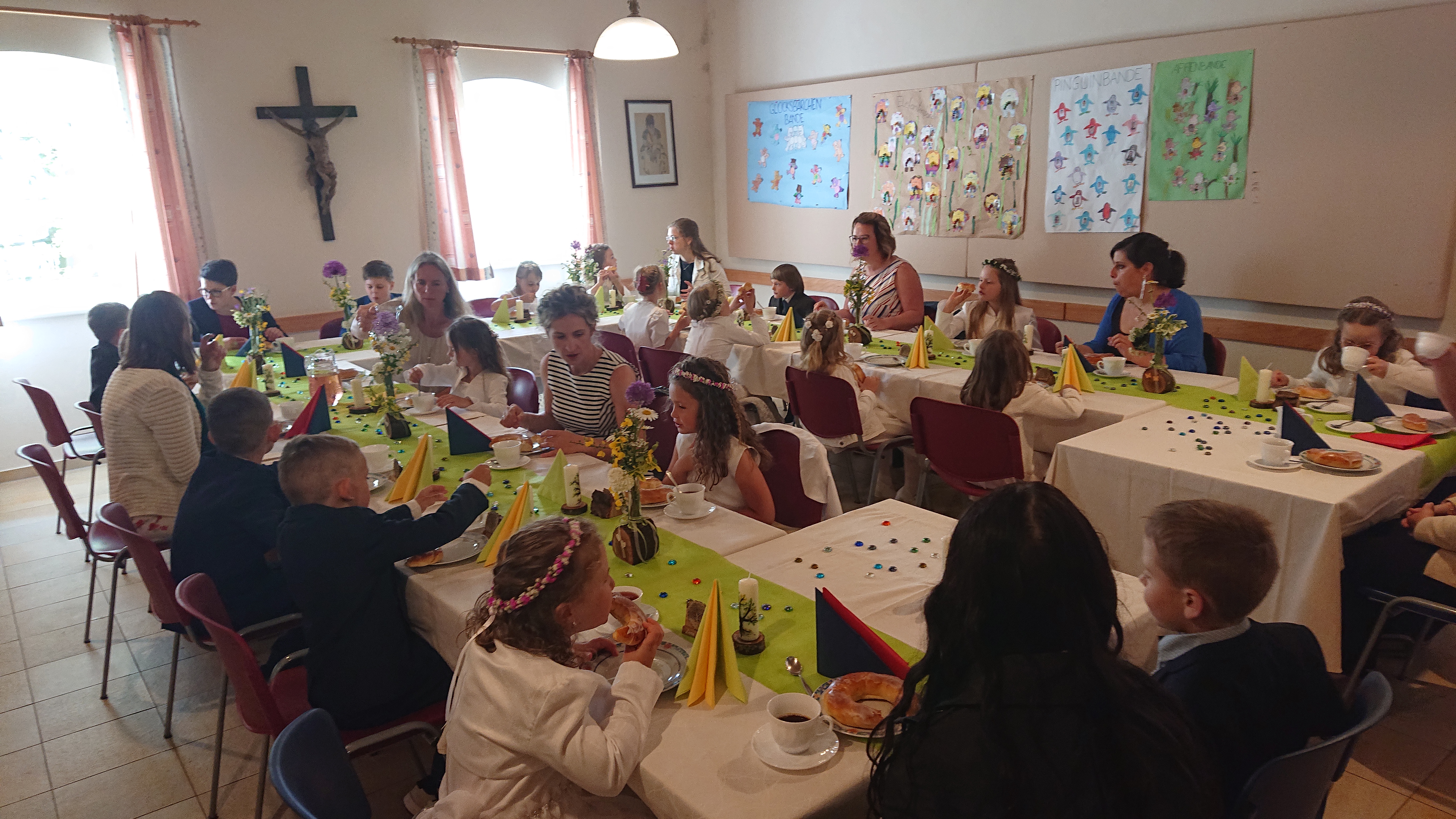 Bei strahlendem Wetter feierten am Festtag Christi Himmelfahrt 18 Kinder der ersten und zweiten Schulstufe ihre Erstkommunion. Mit viel Engagement haben die Tischmütter Tanja Jell, Katrin Falkner, Veronika Bumberger, Sandra Hinterberger, Johanna Schlagnitweit und Claudia Reiter unter der Leitung von unserer Religionslehrerin Martina Lindorfer die Kinder auf den heutigen Festtag vorbereitet. Passend zum Motto: "Gottes Liebe lässt uns wachsen", haben Anni Huber und Karl Kastner wieder eine ganz außergewöhnlich schöne Dekoration in die Kirche gezaubert. Die Festmesse wurde musikalisch von den Kindern der Volksschule, geleitet von Wilbirg Amerstorfer, mit exzellentem Flötenspiel und schönen Liedern gestaltet. Auch die Musikkapelle begleitete die Kinder beim Einzug in die Kirche. Nach dem Gottesdienst lud die Pfarre die Kinder zu einem Frühstück ins Pfarrheim. Währenddessen unterhielten sich die Angehörigen bei einer Agape im Pfarrgarten, organisiert vom Elternverein.