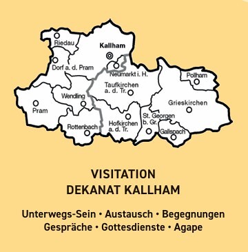 Visitation Dekanat Kallham Wir laden Sie herzlich zu den Angeboten und Begegnungsmöglichkeiten mit den Visitatoren ein. Mit Ihrem Dabeisein bereichern Sie diese Woche. mehr: Visitation Dekanat Kallham