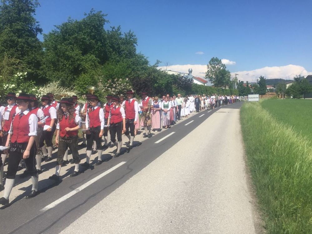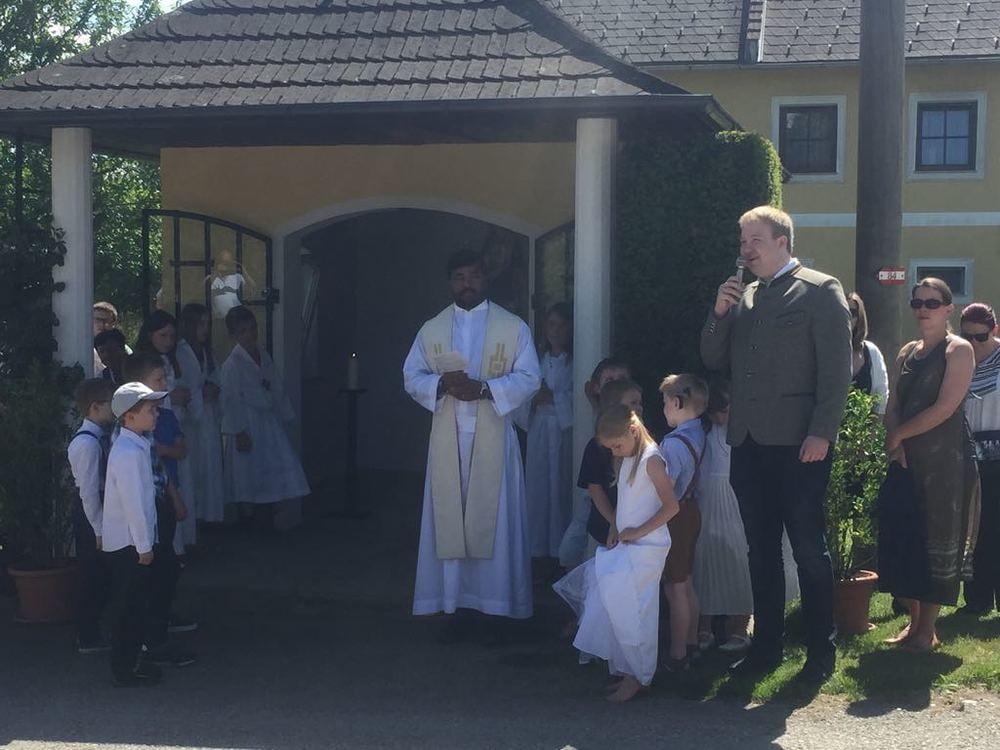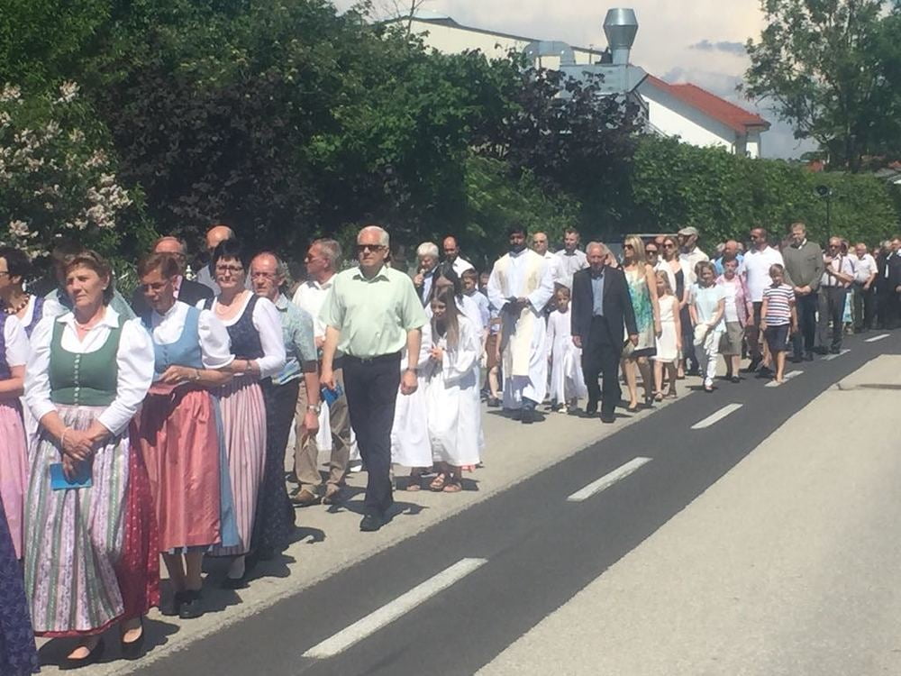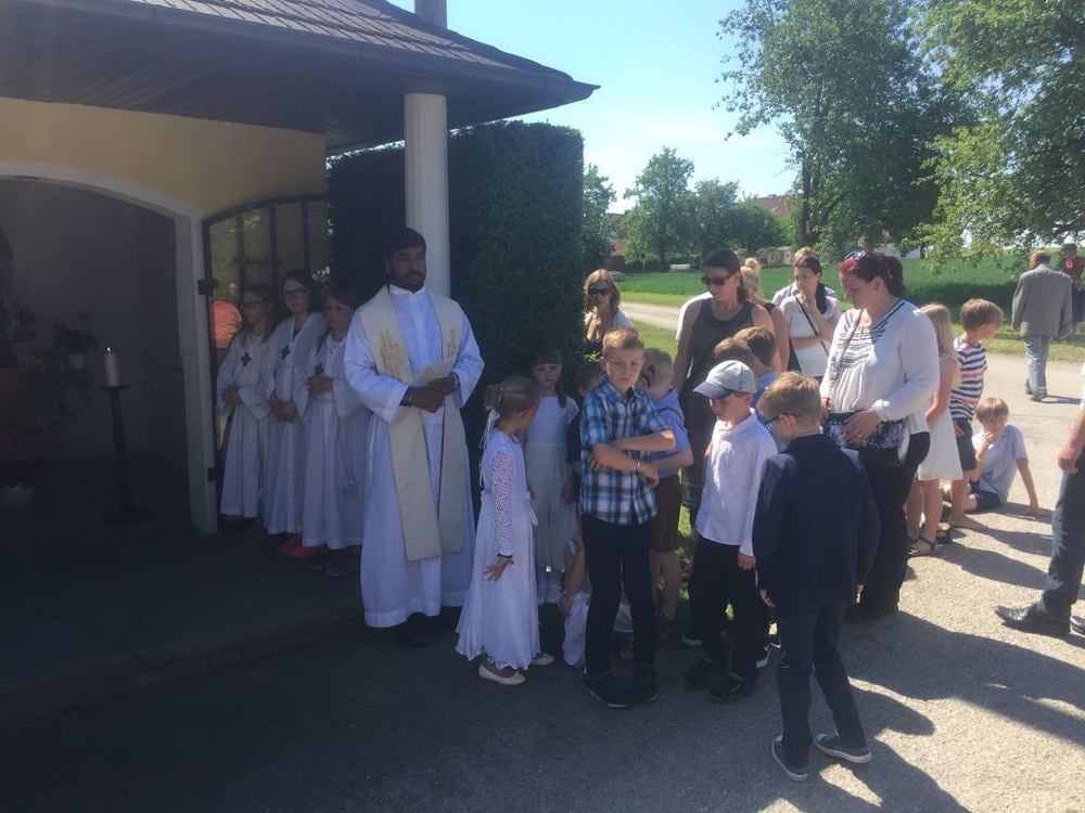 Bei strahlendem Sonnenschein feierten wir Christi Himmelfahrt - vormittags mit festlichen Gottesdiensten und am Nachmittag mit einer Maiandacht - mit Musikkapelle, Kirchenchor, vielen Ministranten und Pfarrmitgliedern - und besonders mit unseren Erstkommunionkindern.