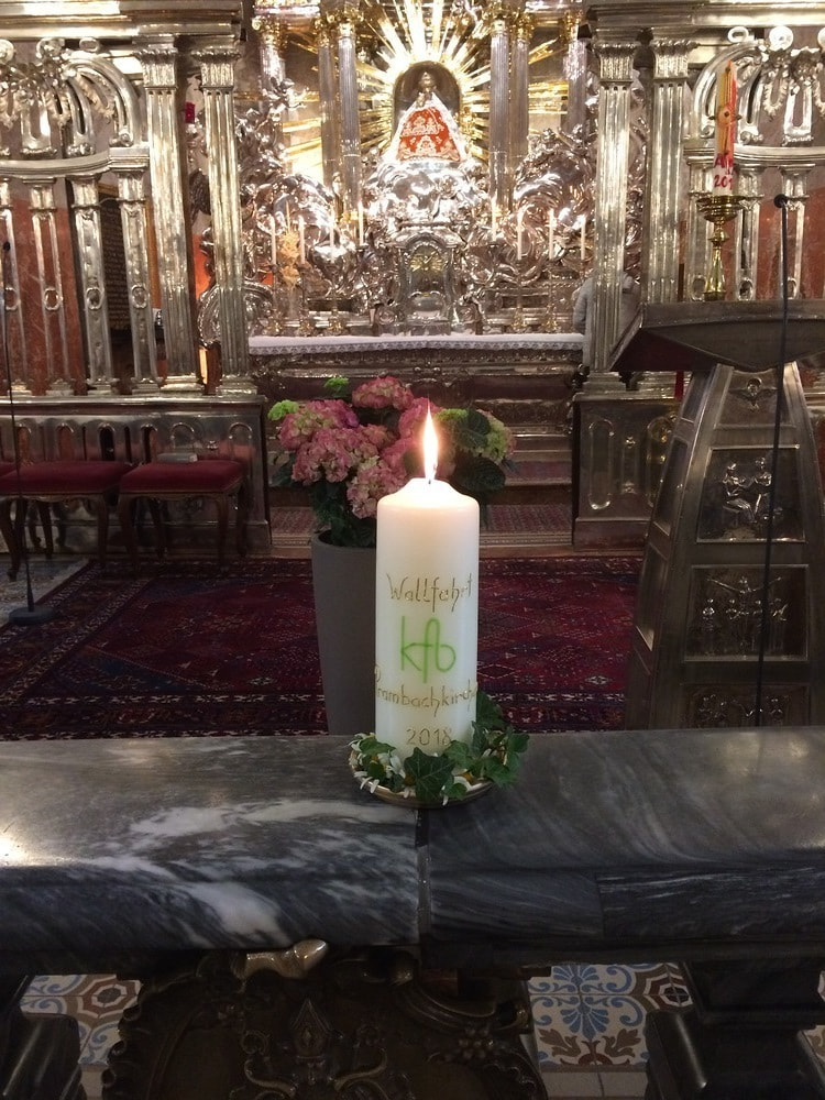 Wir haben vor dem Gnadenbild eine KFB-Kerze entzündet. In das Licht dieser Kerze haben wir alles hineingelegt, was uns bewegt: Freude und Dank, unsere Wünsche und Bitten.