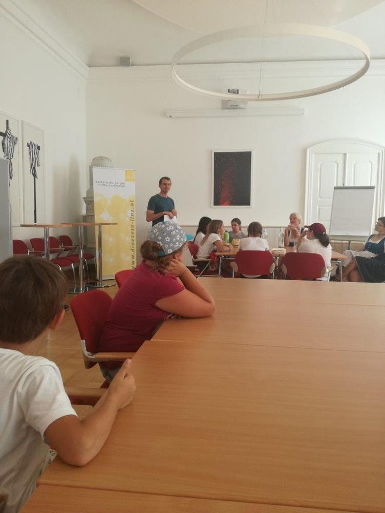 Weiter ging es dann in den Bischofshof, dort wollten wir den Bischofsgarten besichtigen. Da es kurz vorher geregnet hat, gab uns Mag. Kaltseis einen kurzen Einblick über den Bischofshof, wer hier lebt und arbeitet. Auch den alten Dachboden durften wir besichtigten. Dort machten sich ein paar Burschen auf die Suche nach einem Souvenir. Als Herr Mag. Kaltseis dies hörte, sagte er, er hätte noch 300 Jahre alte Nägel bei ihm im Büro stehen, diese könnten sie haben. Die Freude war wirklich groß. In der Zwischenzeit besserte sich das Wetter und wir konnten den wunderschönen Bischofsgarten noch besichtigen. Zum Abschluss übereichten wir an Mag. Kaltseis noch ein kleines Geschenk aus der Heimat von der Kräutermanufaktur Leisch, danke Julia dafür.