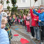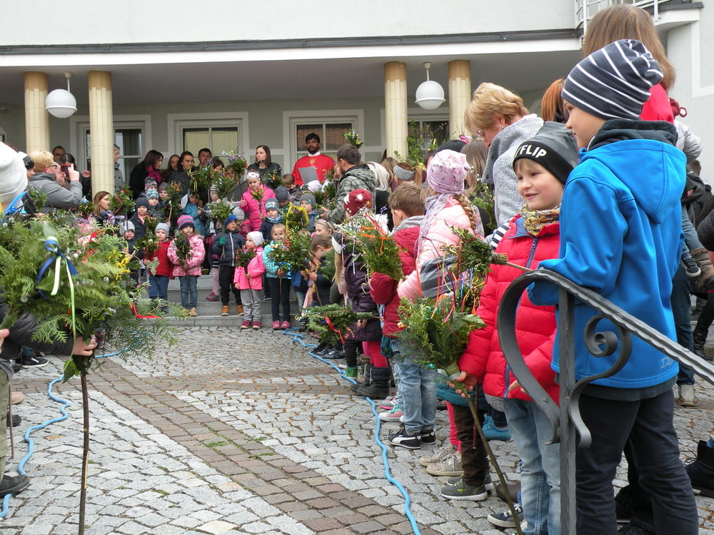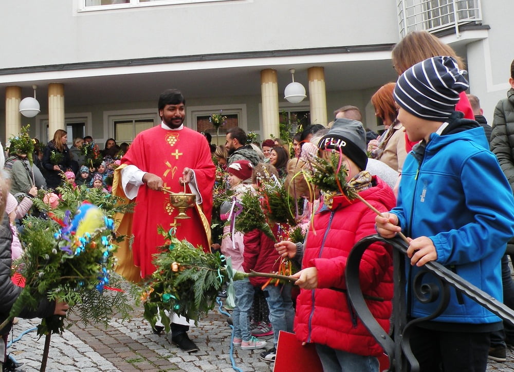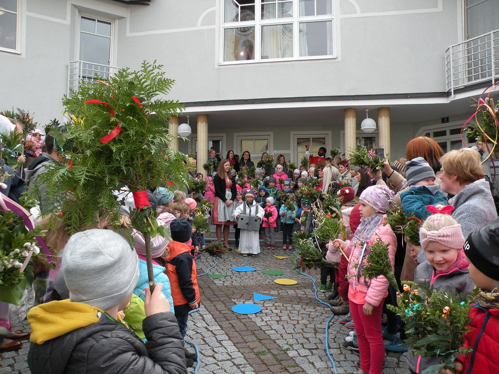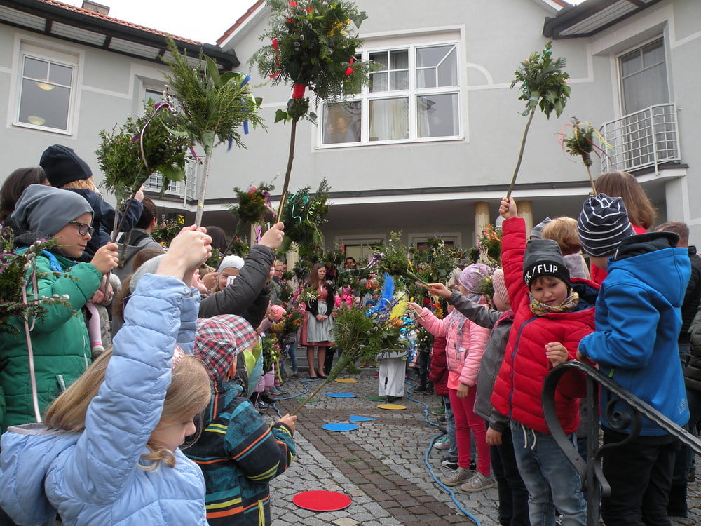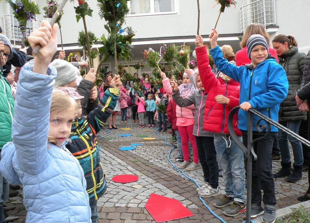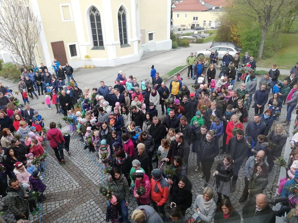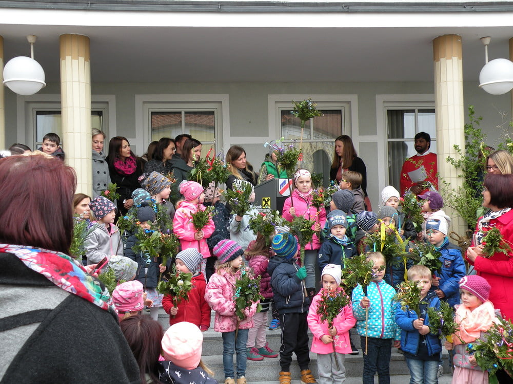 Vor dem Pfarrhof gestalteten wir mit den Kindern die Feier zur Palmweihe und dachten dabei des Einzugs Jesu in Jerusalem.