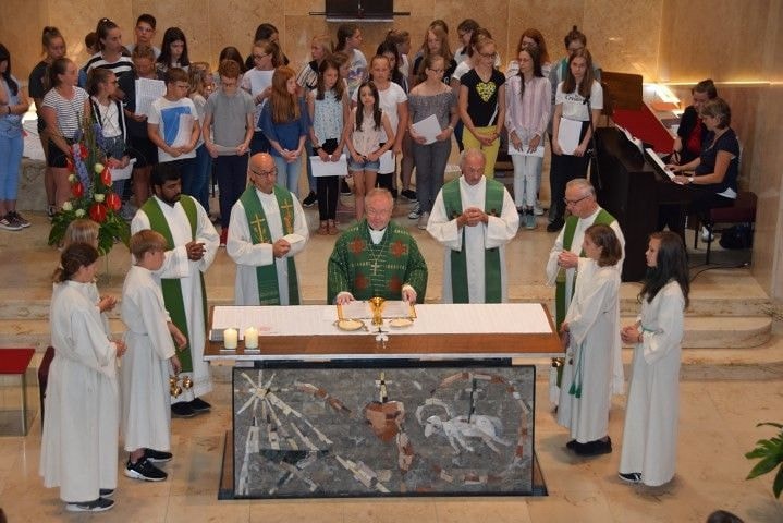 Generalvikar Dr. Severin Lederhilger zelebrierte mit den Mitbrüdern aus der Ordensgemeinschaft den Schulgottesdienst. Dann startete das Schulfest.