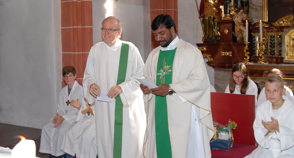Wir durften zwei Jahre einen jungen Priester aus Indien erleben, der uns in vielerlei Weise ungemein bereichert hat. Es waren viele schöne Momente menschlicher und religiöser Begegnungen, die wir sicher nicht vergessen werden.