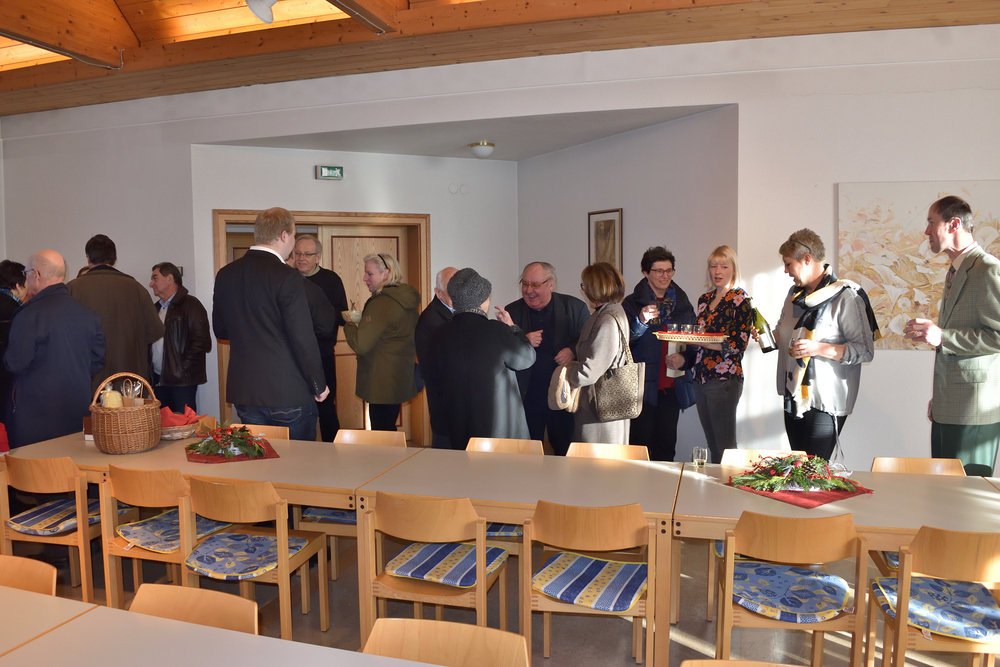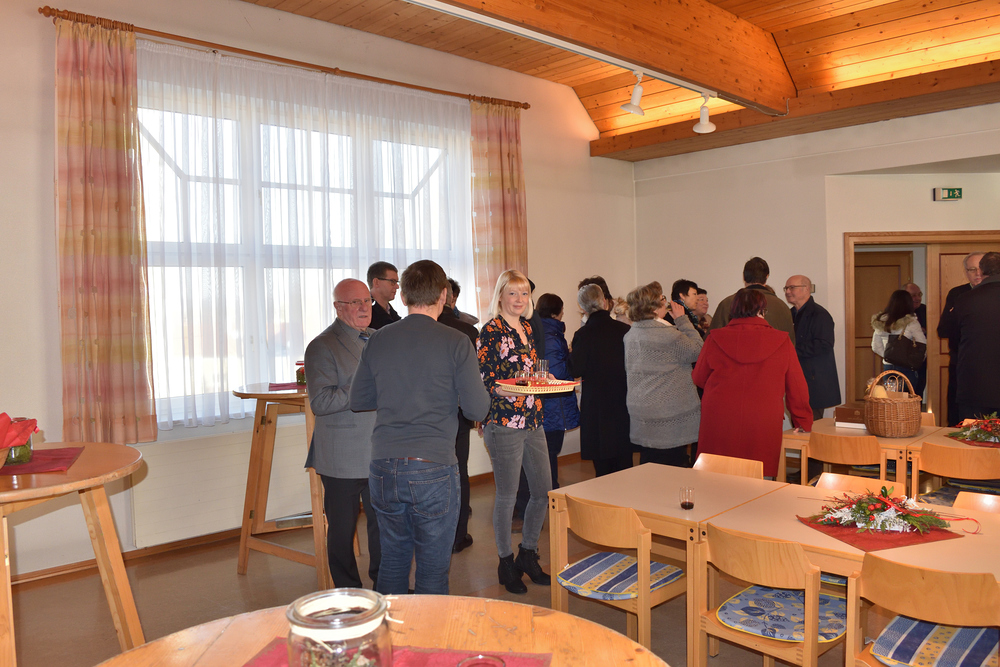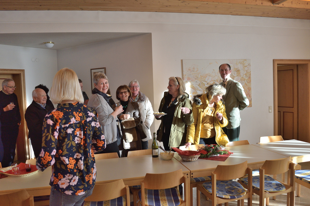 Im Anschluss an die Wortgottesfeier lud der Pfarrgemeinderat alle Kirchenbesucher noch zu einer kleinen Agape mit Brot und Wein in den Pfarrsaal ein.