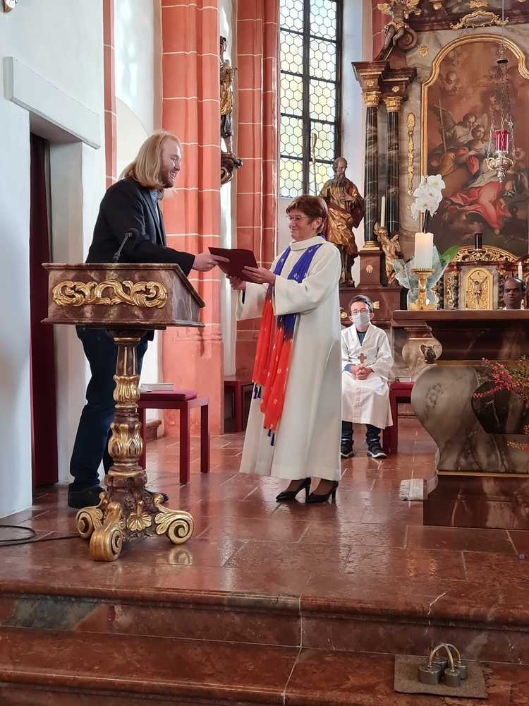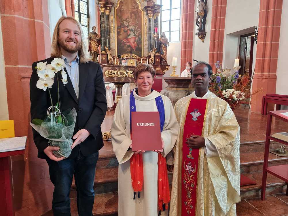 Nach einer umfangreichen Ausbildung hat Kaplan Paul beim Gottesdienst am Sonntag, den 24. Oktober 2021 das Dekret der bischöflichen Beauftragung zur Leitung von Wortgottesfeiern überreicht.