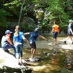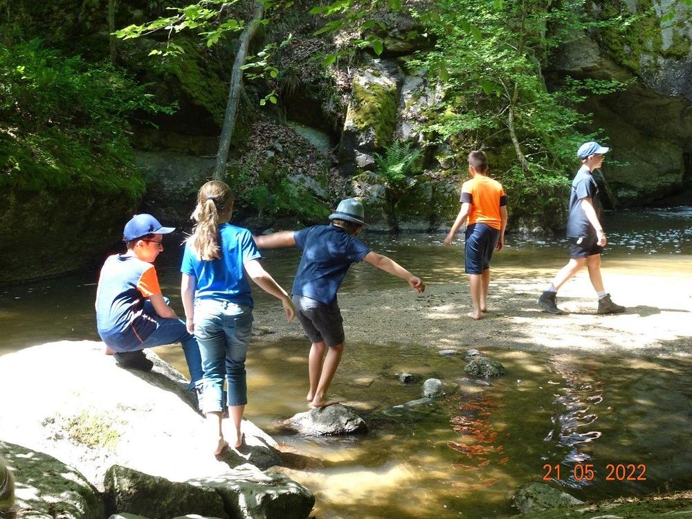 Die erfrischende Wassertemperatur des Pesenbachs war keinesfalls abschreckend. Die Wassertiefen, Felsen, Höhlen und Inseln wurden ausgiebig erkundet.