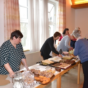 Nach dem Gottesdienst mit Palmweihe wurde zum Pfarrcafe ins Pfarrheim eingeladen. Weiters wurde ein kleiner Osterbasar veranstaltet.