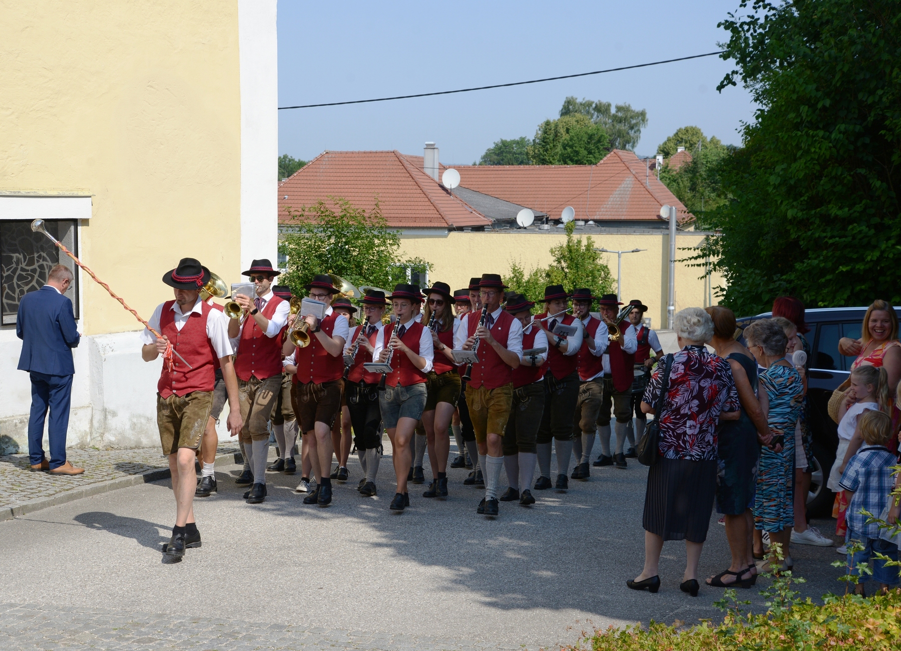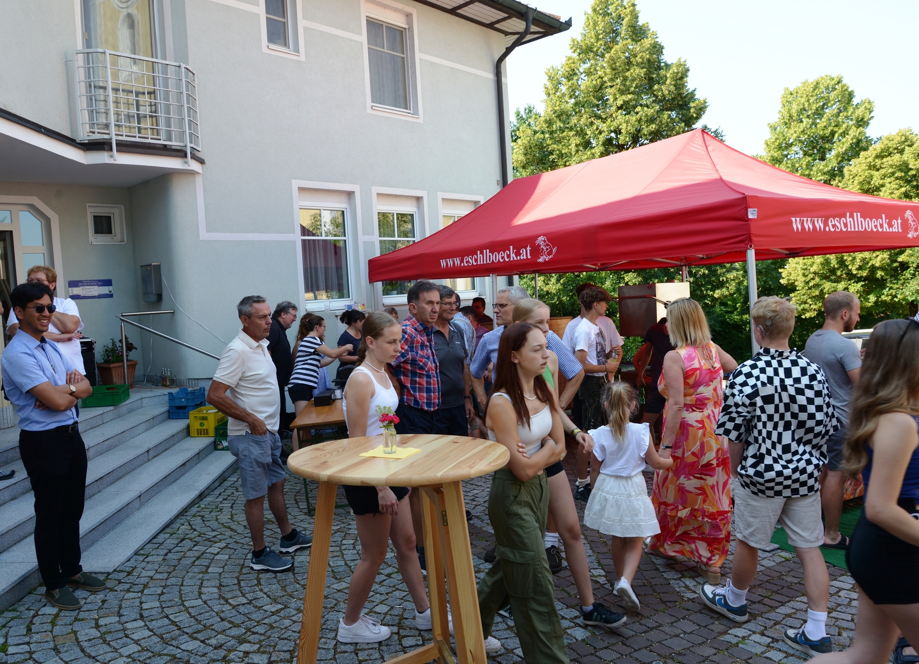 Die Pfarrbevölkerung war im Anschluss an den Gottesdienst in den wunderschönen Pfarrgarten eingeladen. Für das leibliche Wohl war mit einer gschmackigen Kistensau, Bratwürstel, Pizzas und Baguettes gesorgt. Auch die Auswahl an Getränken an der Schank war an dem heißem Sonntagmittag und -nachmittag begehrt. Der Musikverein Prambachkirchen sorgte unter Kapellmeister Florian Lindinger wieder für die musikalische Unterhaltung.