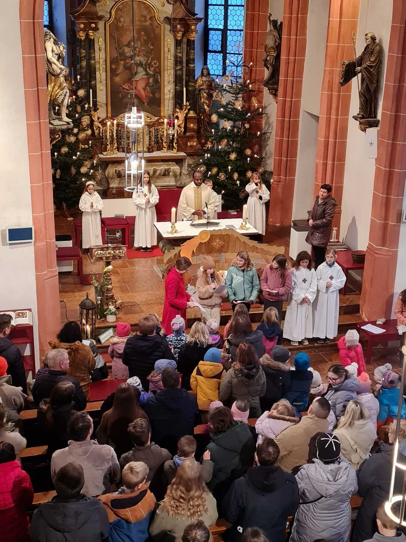 Deshalb haben wir gemeinsam überlegt, über welche Geschenke sich Jesus freuen würde und haben diese Geschenke heute bei der Kindermette zur Krippe gebracht.