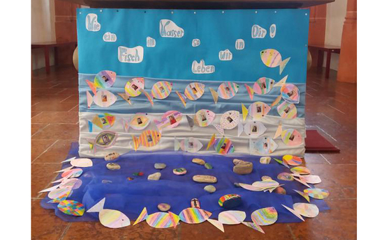 "Wie ein Fisch im Wasser, so leben wir in dir!" ... unter diesem Jahresmotto bereiten sich unsere Erstkommunionkinder vor - beim Gottesdienst am Sonntag, 8. März 2020 stellten sich die Kinder die Pfarrgemeinde vor.