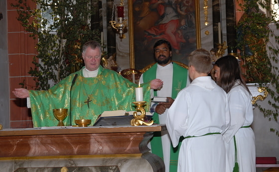 Abschiedsgottesdienst von P. Paul osfs am 08.09.2019 um 09:00 Uhr Nun heißt es Dank zu sagen. Wir durften zwei Jahre einen jungen Priester aus Indien erleben, der uns in vielerlei Weise ungemein bereichert hat. Es waren viele schöne Momente menschlicher und religiöser Begegnungen, die wir sicher nicht vergessen werden. P. Paul, ein herzliches Vergelts´Gott. zu den Bildern: Abschiedsgottesdienst von P. Paul osfs