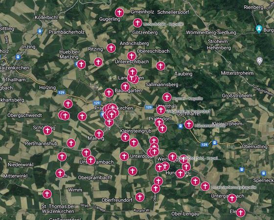 Klicken Sie auf die Karte (Sie werden zu Google Maps weitergeleitet) und entdecken Sie die vielen Kapellen und Bildstöckl in unserer Pfarre!