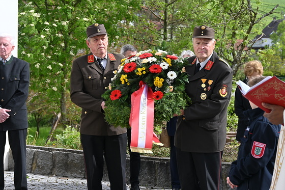 Nach dem Gottesdienst gedachte Pfarrer Victor und die Kameraden der gefallenen Soldaten beim Kriegerdenkmal.