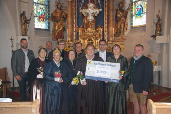 Die Goldhaubenfrauen, die ehemaligen Mitglieder der Tarockrunde und die "Gesunde Gemeinde" übergaben Spendenschecks als Beitrag zur Restaurierung des Hochaltars.