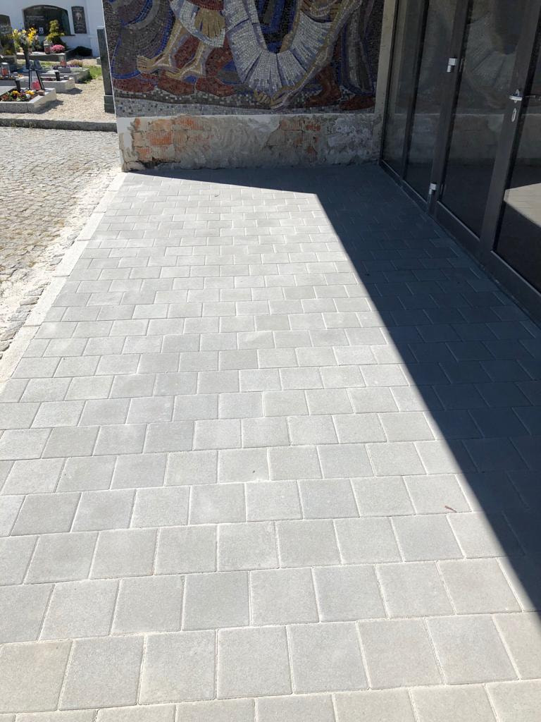 Die Pflasterung vor der Aufbahrungshalle mußte erneuert werden. Vielen Dank an die freiwilligen Helfer.