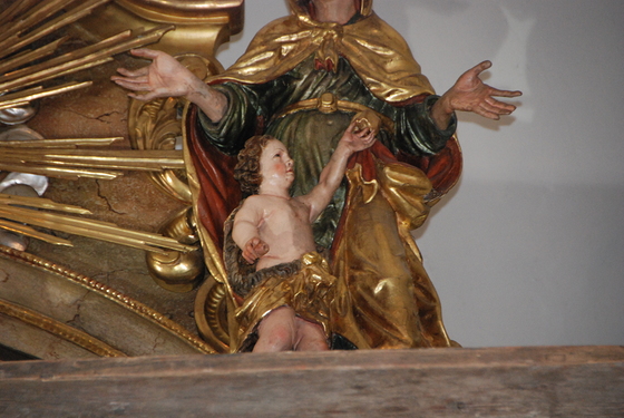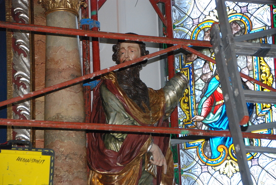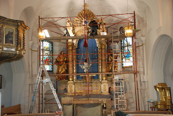 Am Montag, 27.4. wurde das Gerüst um den Hochaltar aufgebaut und danach startete sofort die Restaurierung.