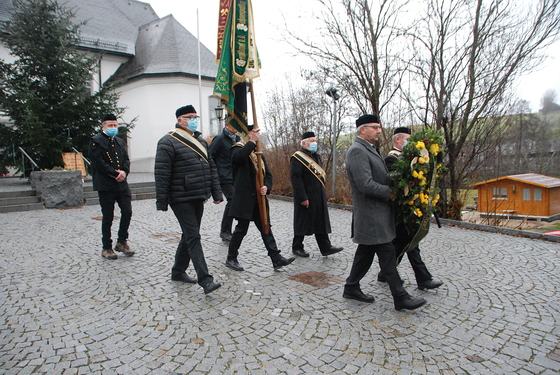 Der Gottesdienst wurde in ganz kleinem Rahmen von den Bergknappen mitgestaltet. Anschließend wurde mit einer Kranzniederlegung beim Bergknappendenkmal der verstorbenen Kameraden gedacht.