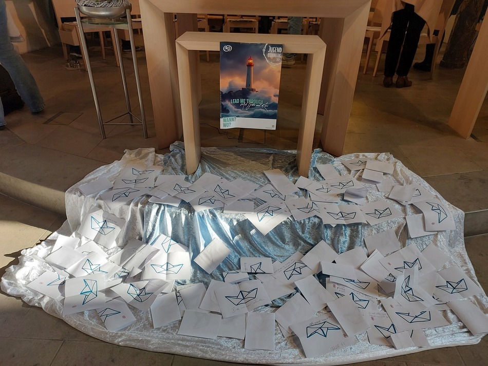 Am Christkönigsonntag, dem „Jugendsonntag“, feierten wir mit unserer Jugend einen schwungvollen Gottesdienst zum Thema: „Lead Me Through - Mit Gott auf Kurs“. Die Jugendlichen regten alle Besucher an, persönliche Fürbitten aufzuschreiben und beim Friedensgruß ein Friedensnetz zu bilden. Danke an unsere Jugend für die tolle Vorbereitung und die musikalische Gestaltung!