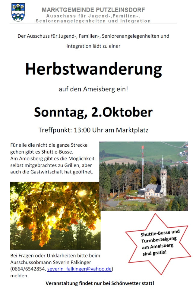 Herbstwanderung Ameisberg - Sonntag, 02.10.2016