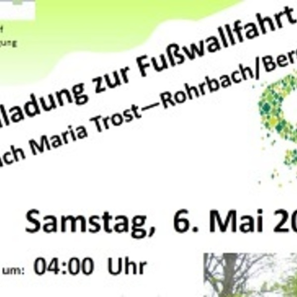 Am Samstag, 6. Mai organisiert die KFB wieder die Fußwallfahrt nach Maria Trost. Abmarsch ist um 4:00 Uhr in der Früh am Marktplatz. Nähere Informationen findet ihr am Plakat.