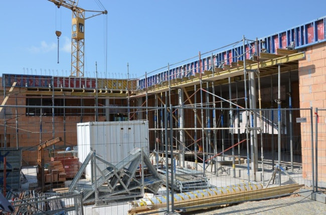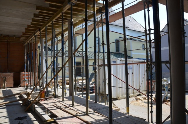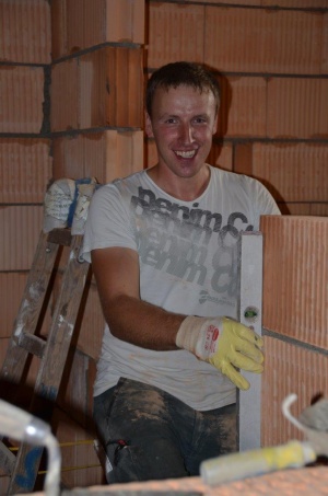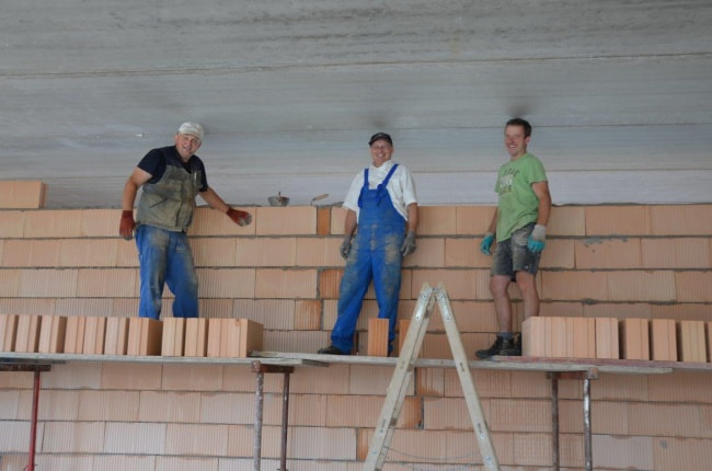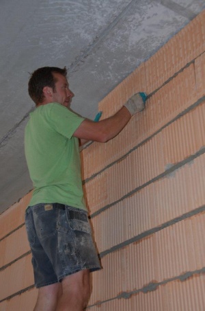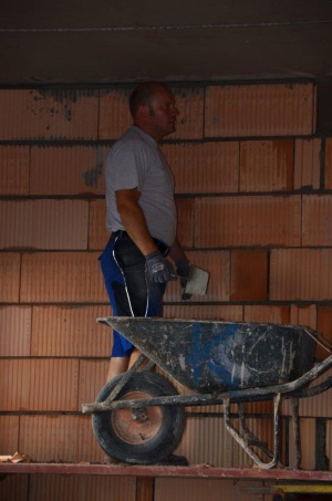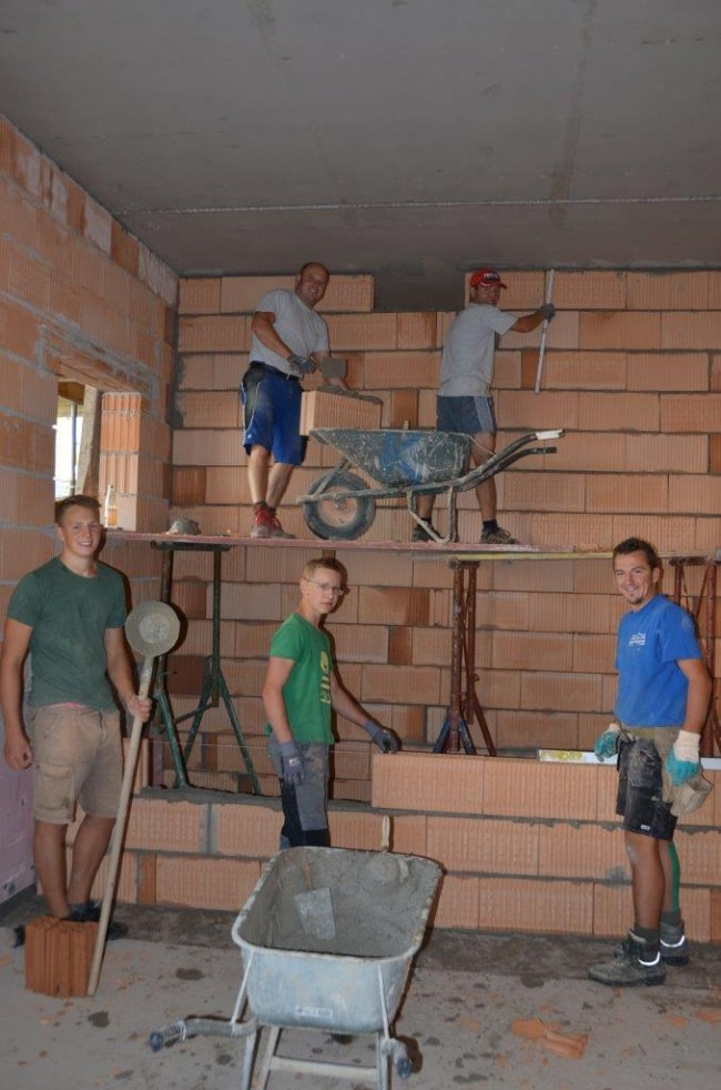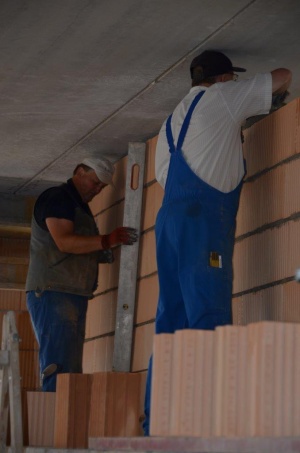 Eine Partie von pfarreigenen Kräften hat im Untergeschoss die Zwischenwände aufgestellt...