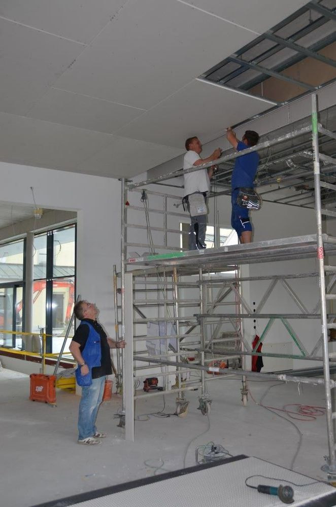 Derzeit erfolgen beim Pfarrheim Trockenbauarbeiten (Küchentrennwand und Decken).
