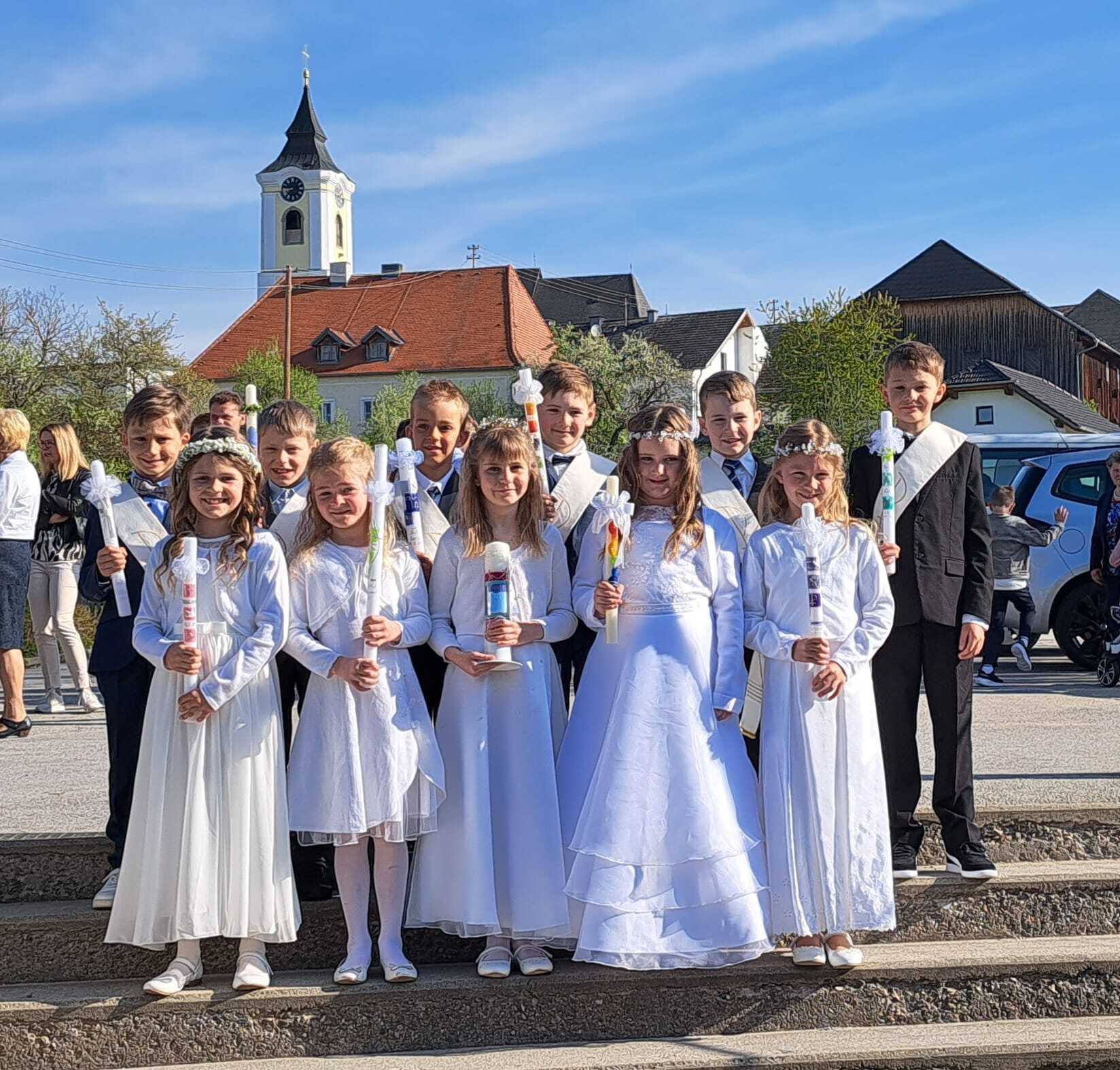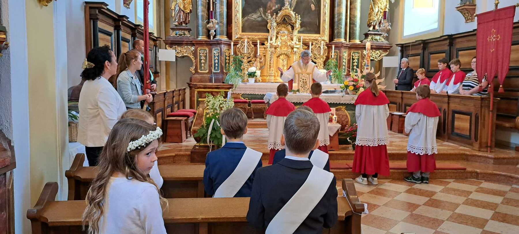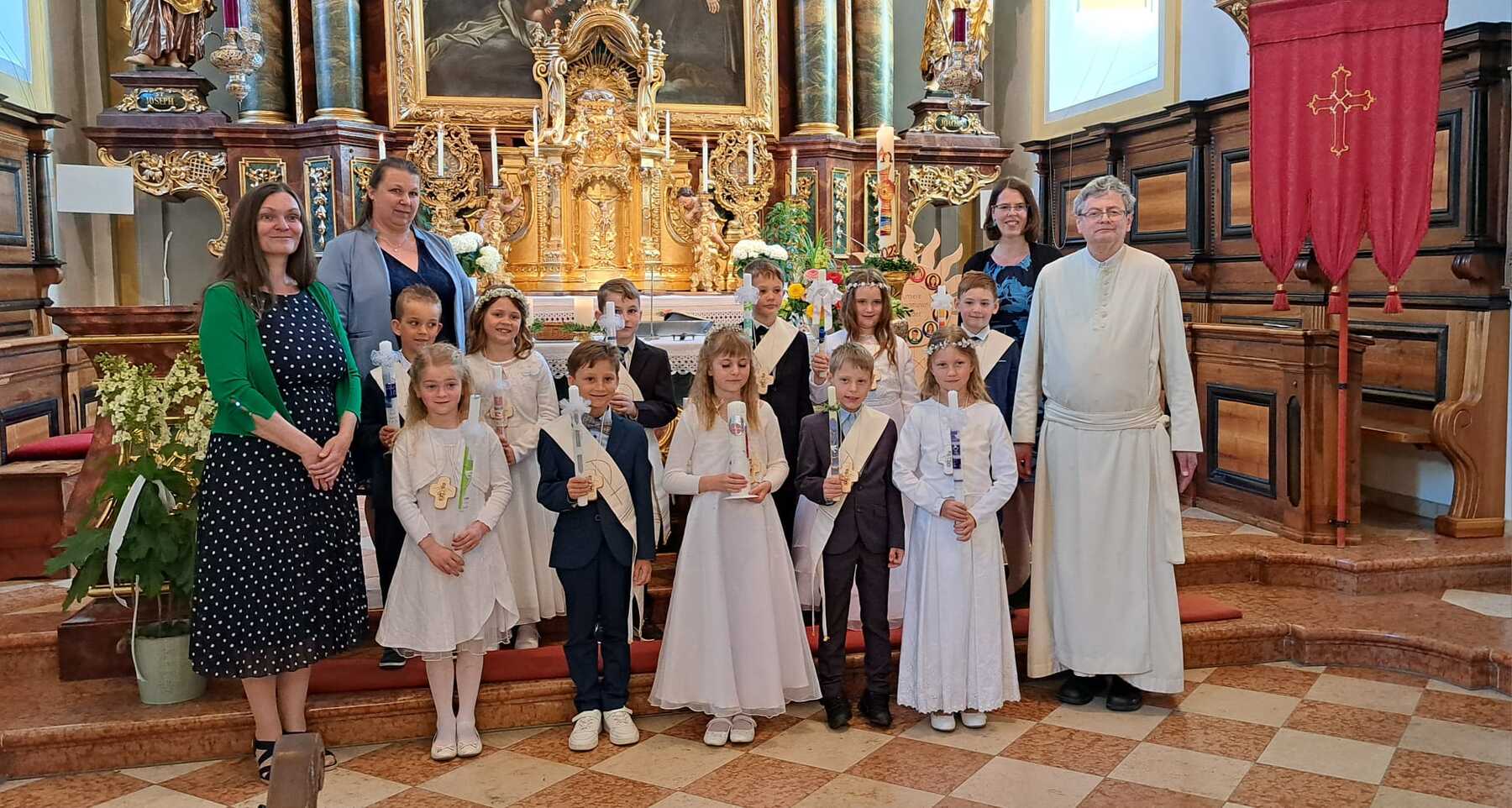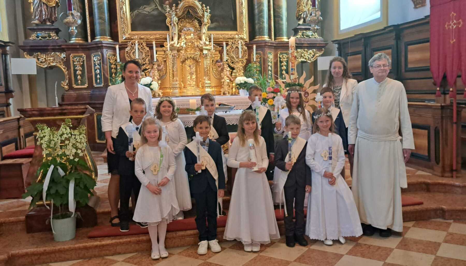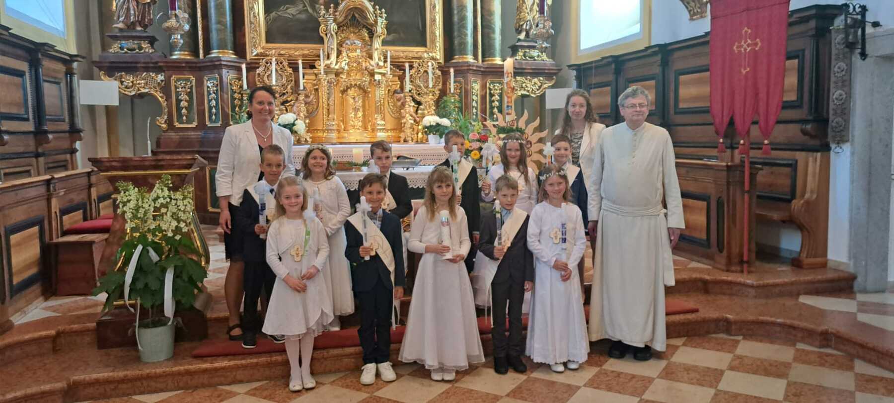 Bei schönstem Frühlingswetter konnte am Sonntag, 7. Mai, die Erstkommunion gefeiert werden. Es war ein lebendiges, freudiges Fest für die Erstkommunionkinder und die gesamte Pfarrbevölkerung.