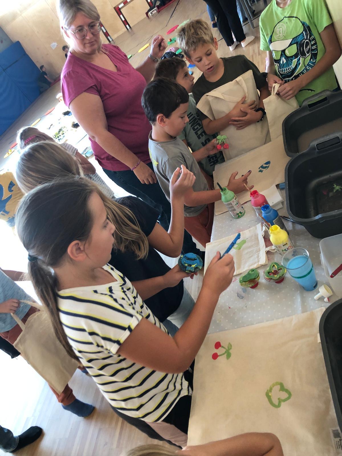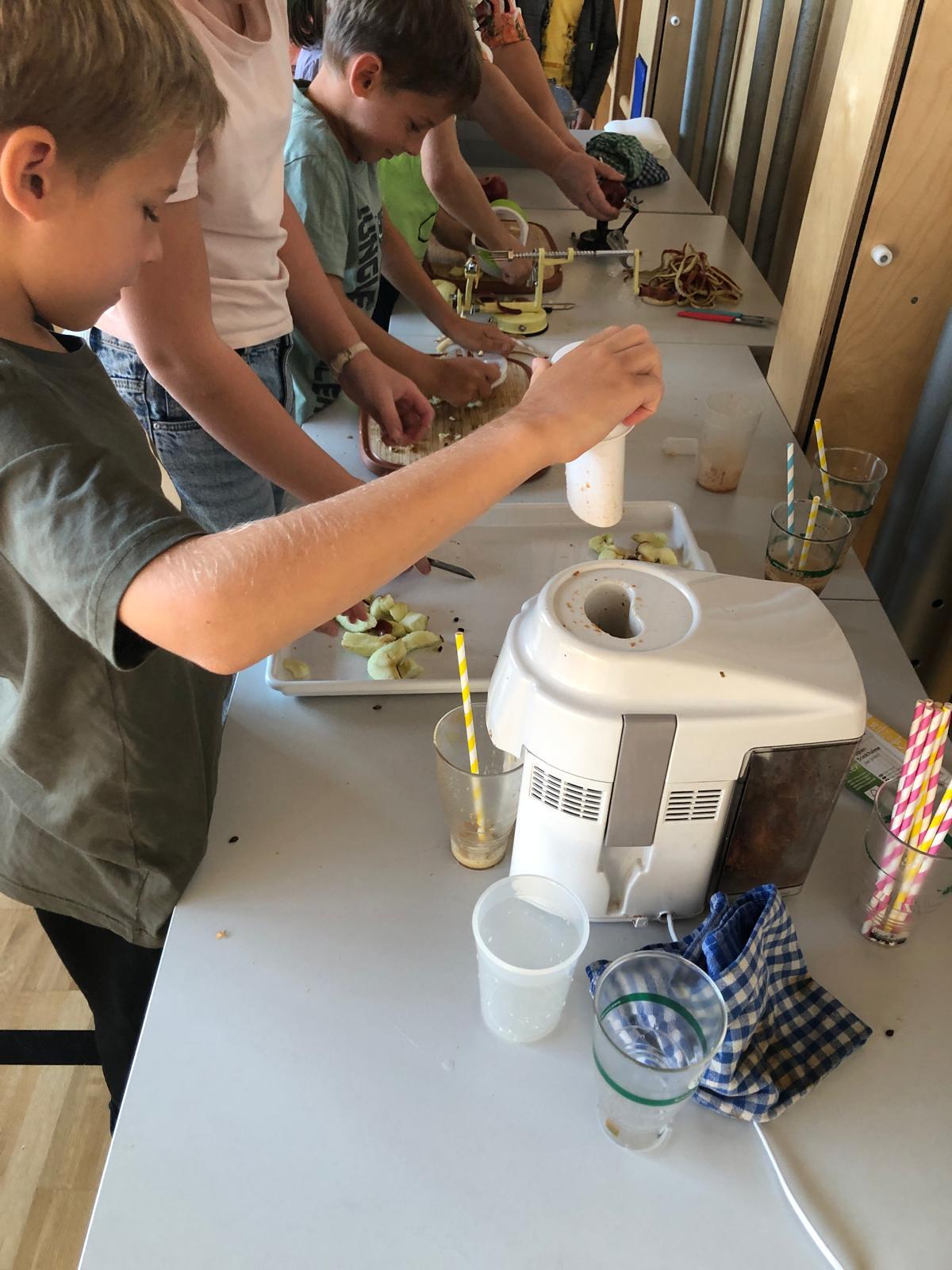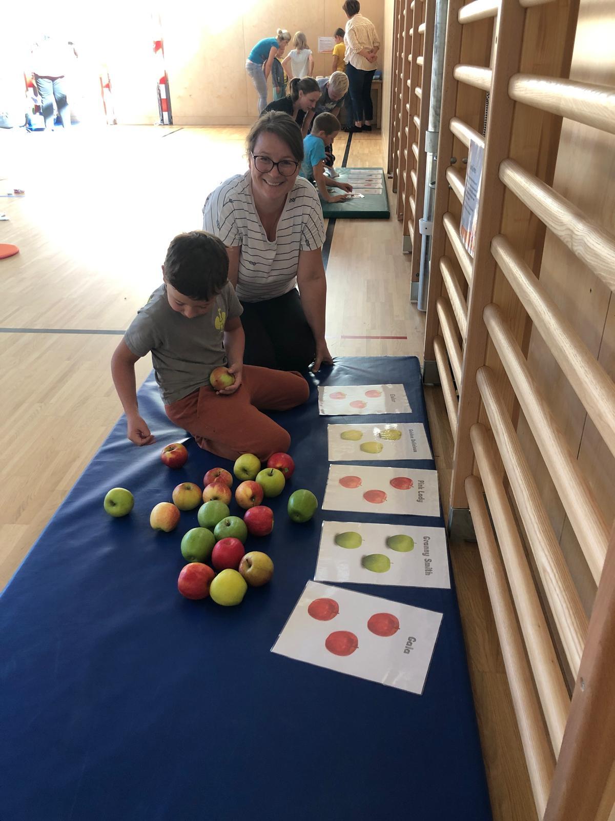 Beim anschließenden Stationenbetrieb wurden Apfelspeisen verkostet, Saft gepresst, Taschen bemalt, Pyramiden gebaut und vieles mehr.