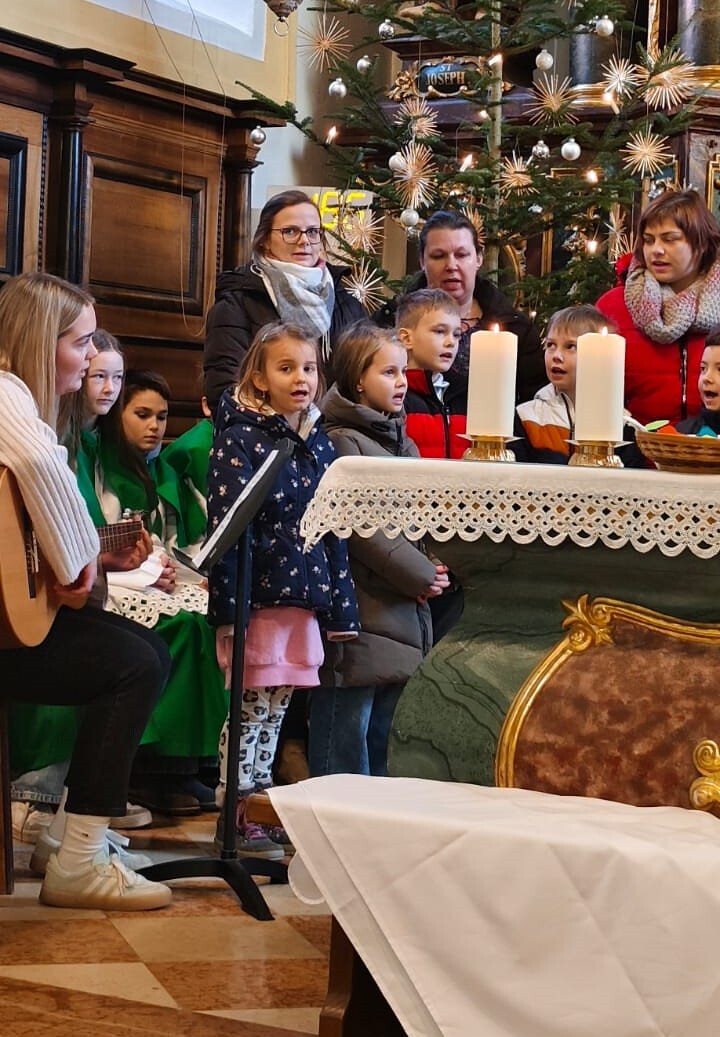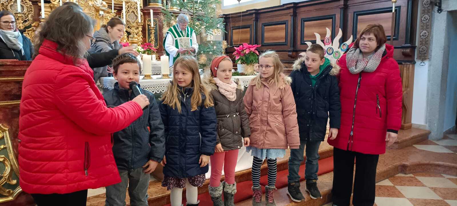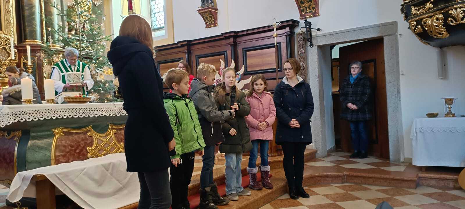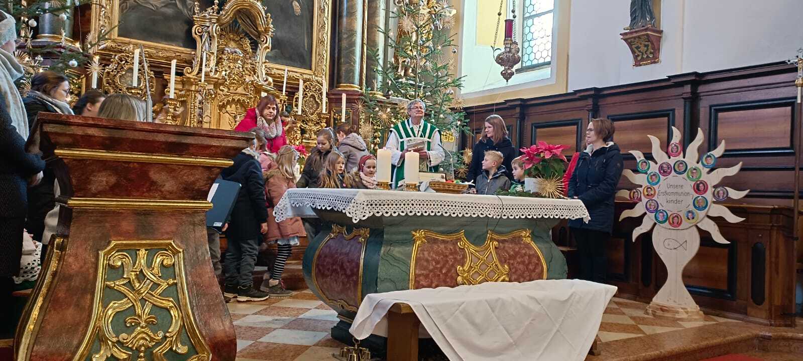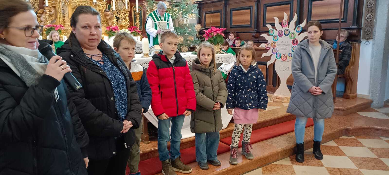 Sechzehn 2. Klassler werden von 7 Tischmüttern (Anita Hölzl, Sandra Grünseis, Martina Wilhelm, Sabine Höretzeder, Carina Aichbauer, Sandra Anreiter und Tanja Mühlbauer) und ihrer Religionslehrerin Frau Nikola Gabriel zur Erstkommunion begleitet.