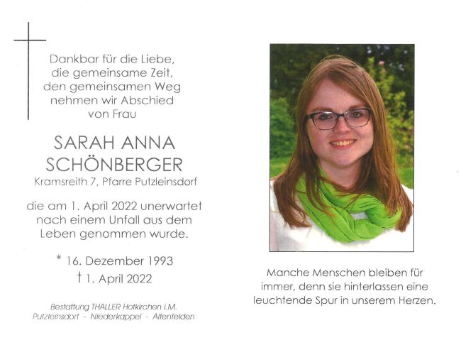 01.04.2022: Sarah Schönberger, Kramsreith 7, 29. Lj.