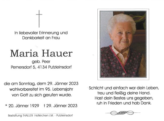 29.01.2023: Maria Hauer, Pernersdorf 5, 95. Lj