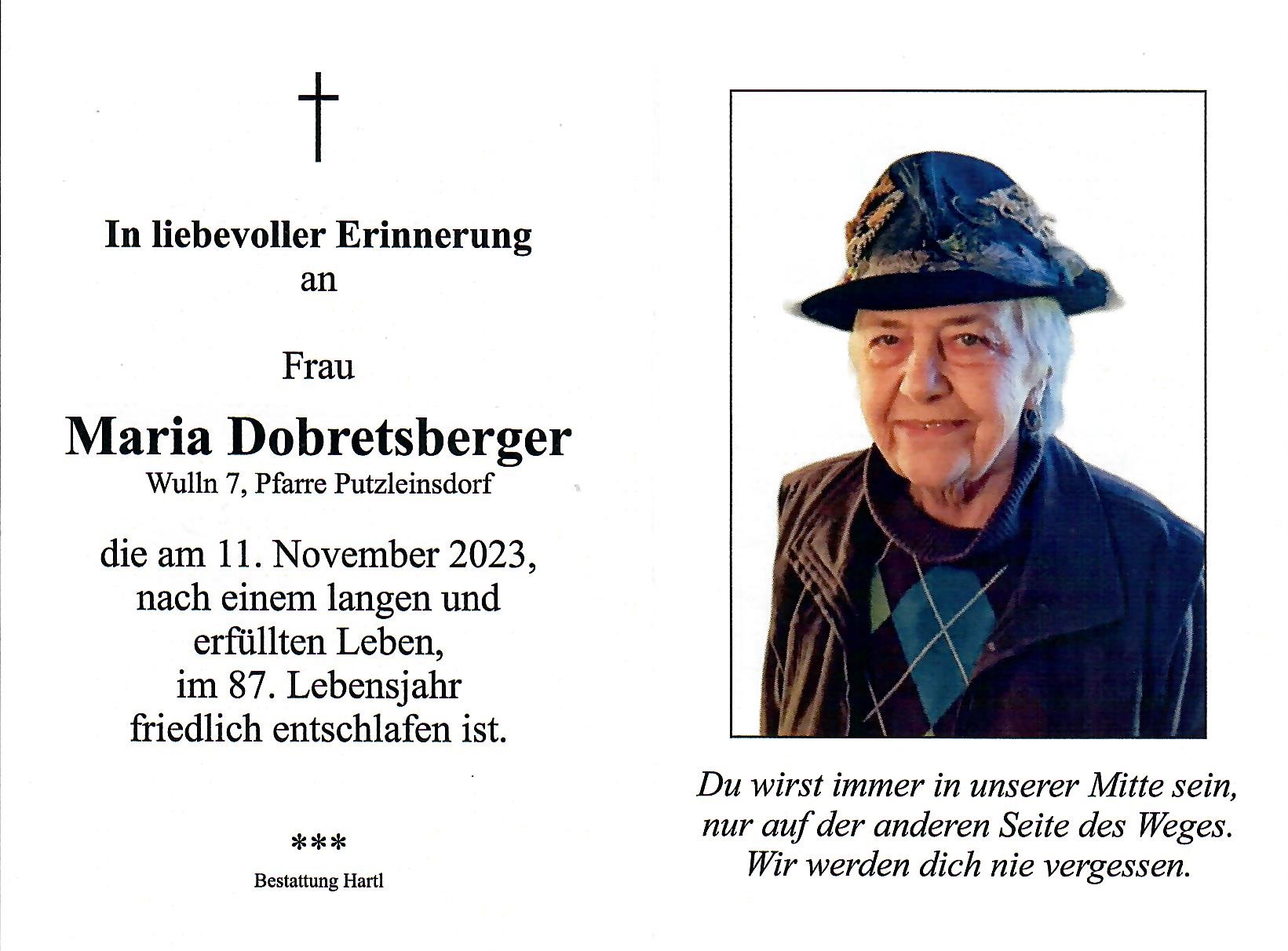 11.11.2023: Maria Dobretsberger, Wulln 7, 87. Lj.